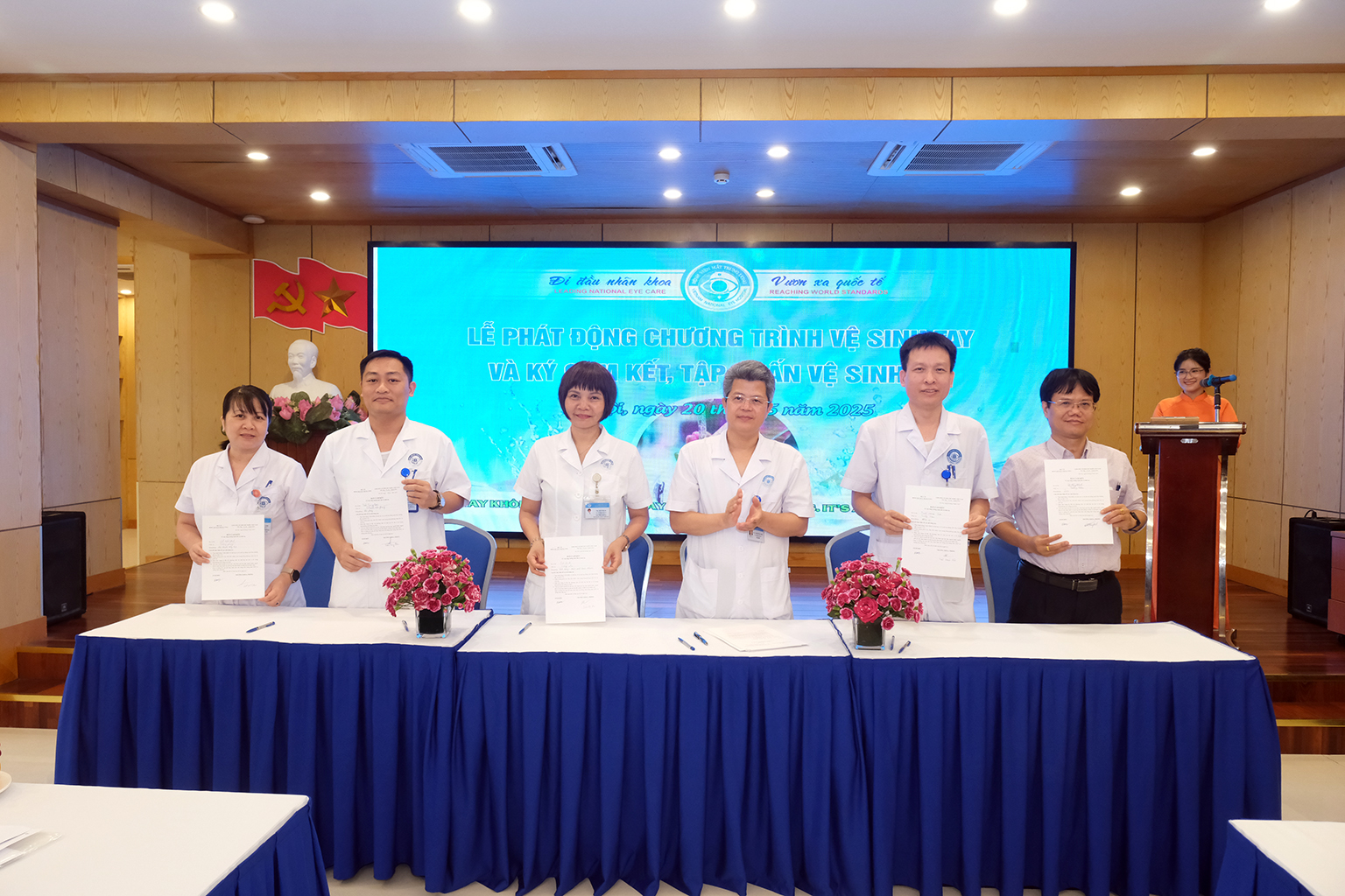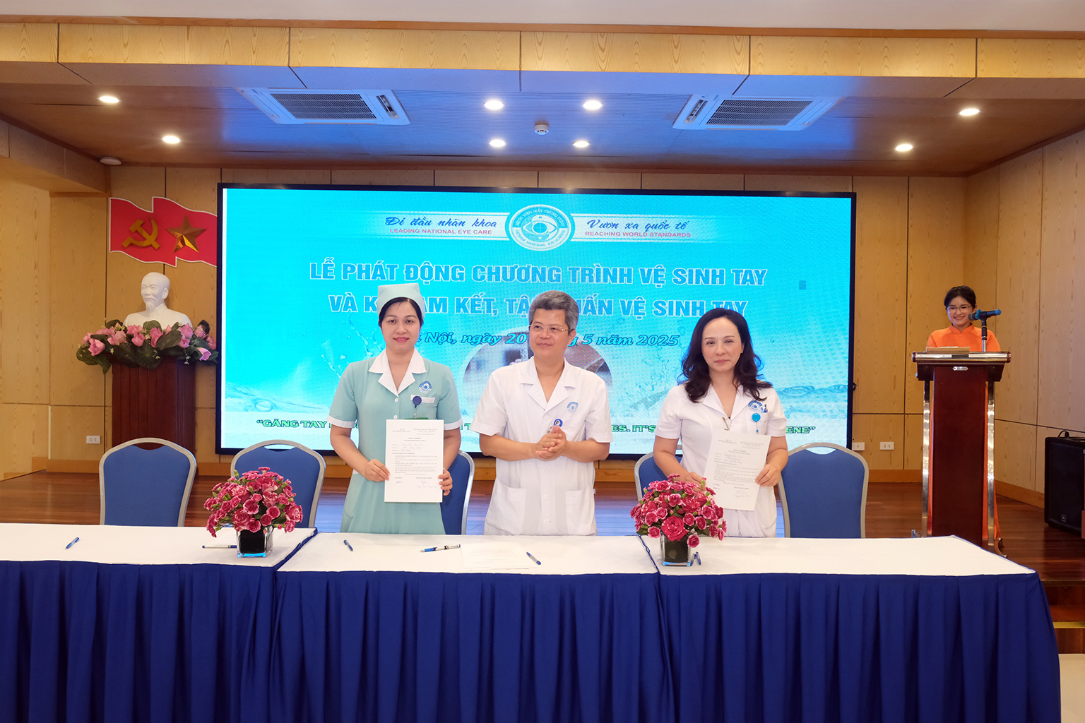 Ngày 20/5/2025, Bệnh viện Mắt Trung ương tổ chức Lễ phát động chương trình vệ sinh tay, kêu gọi toàn thể cán bộ, nhân viên y tế, người lao động, bệnh nhân và người nhà bệnh nhân cùng thực hiện vệ sinh tay đúng cách. Đồng thời yêu cầu các khoa, phòng Bệnh viện ký cam kết thực hiện, sử dụng găng tay đúng, tăng cường công tác kiểm soát nhiễm khuẩn để mang lại hiệu quả cao nhất trong điều trị và chăm sóc người bệnh.