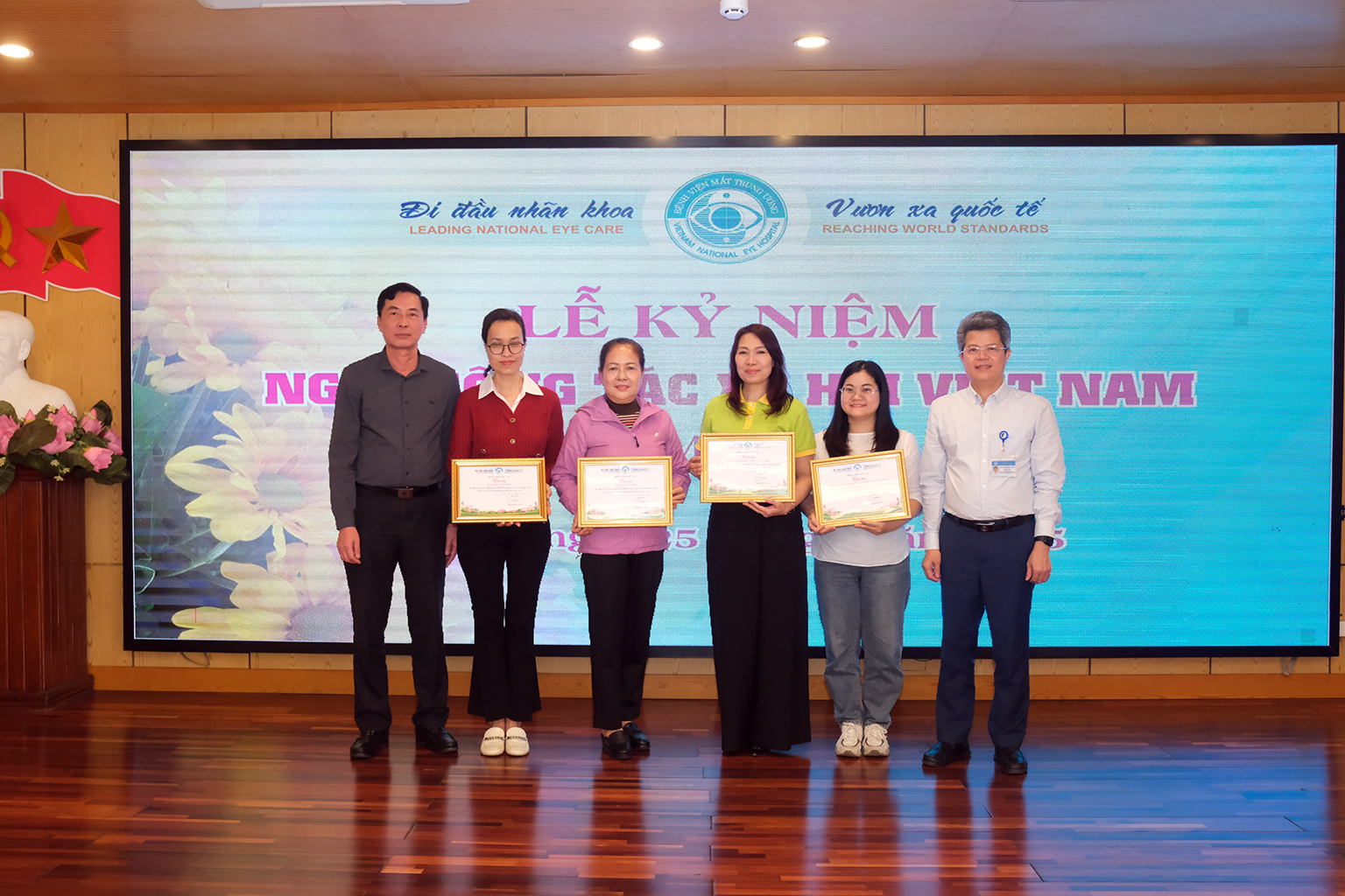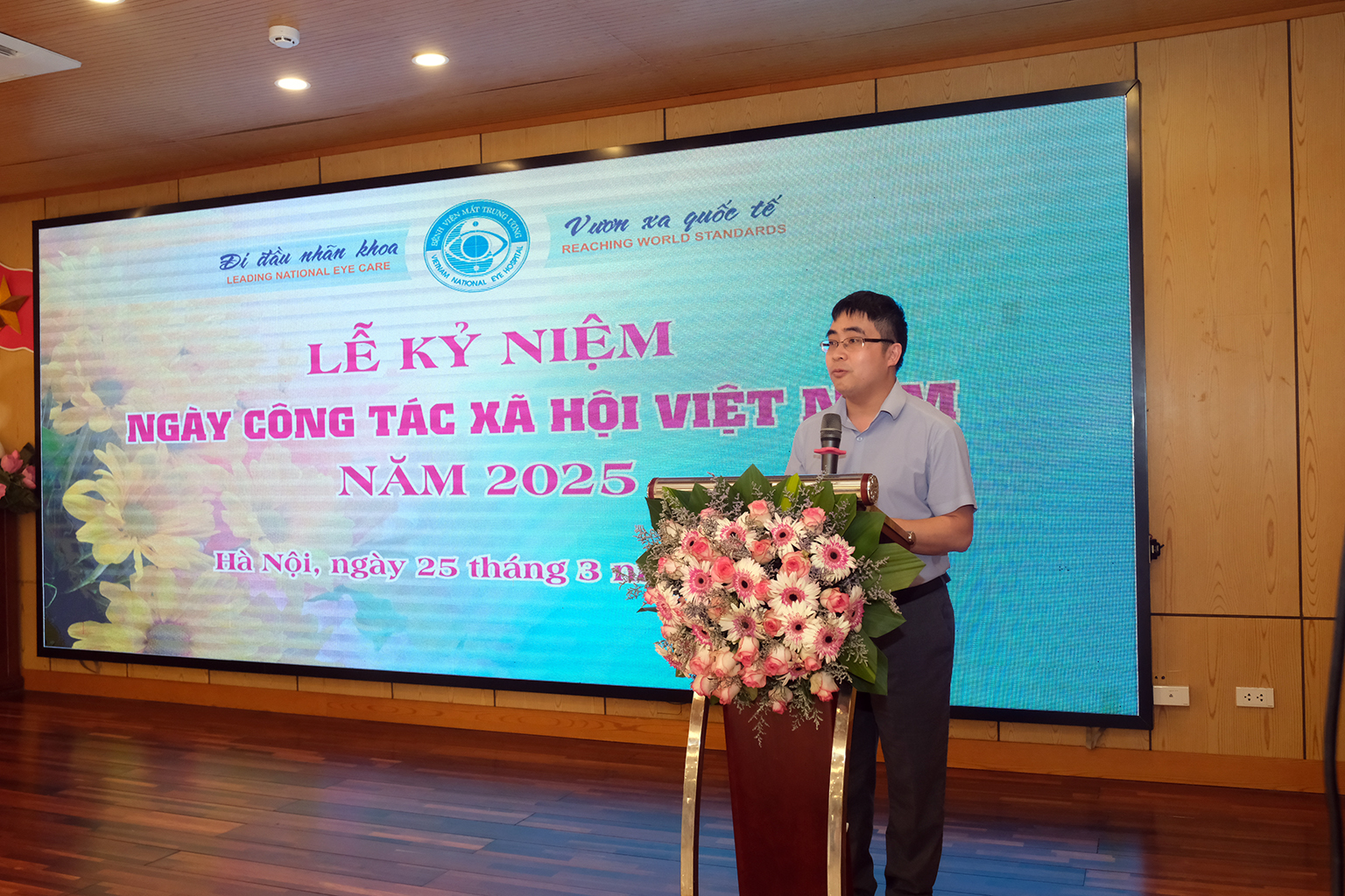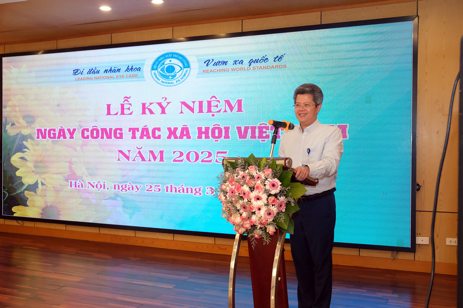 Tại Lễ kỷ niệm Ngày Công tác xã hội Việt Nam 25/3, ông Nguyễn Đức Thành, Phó Giám đốc Bệnh viện Mắt Trung ương kiêm phụ trách Phòng CTXH đã đọc thư của Bộ trưởng Bộ Y tế Đào Hồng Lan gửi tới toàn thể cán bộ, nhân viên, cộng tác viên đang hoạt động trong lĩnh vực công tác xã hội. Lá thư có đoạn viết: “Năm 2025 có ý nghĩa đặc biệt quan trọng, là tăm tiền đề đất nước ta bước vào Kỷ nguyên mới - Kỷ nguyên vươn mình phát triển giàu mạnh, thịnh vượng của dân tộc, với phương châm “Công tác xã hội Việt Nam- Đổi mới, kết nối và chuyên nghiệp”, tôi tin tưởng rằng đội ngũ những người làm công tác xã hội tiếp tục phát huy thành tựu, luôn nỗ lực rèn luyện chuyên môn, đạo đức nghề nghiệp để phụng sự Tổ quốc, phục sự nhân dân”.