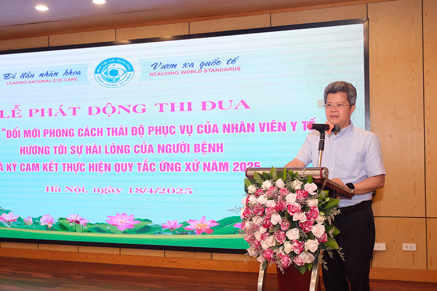 Chia sẻ về đợt phát động thi đua lần này, PGS. TS Phạm Ngọc Đông, Giám đốc Bệnh viện MắtTrung ương mong muốn toàn thể nhân viên y tế Bệnh viện Mắt Trung ương xem người bệnh là khách hàng, là trung tâm phục vụ. Trong đó nhấn mạnh đến các hoạt động đổi mới kỹ năng giao tiếp ứng xử, cải thiện môi trường làm việc đi vào chiều sâu, ở mọi bộ phận, mọi khâu, cùng nhau đoàn kết, chung sức xây dựng “ngôi nhà chung” Bệnh viện Mắt Trung ương, xứng đáng với niềm tin mà người bệnh đã tìm đến, trao gửi.