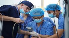 Sáng ngày 26/5/2025 khoá đào tạo thực hành khám, điều trị bệnh Glôcôm trẻ em đã được Bệnh viện Mắt TW và Orbis phối hợp tổ chức. Đây là hoạt động trong khuôn khổ hợp tác giữa 2 đơn vị được ký kết từ tháng 3/2025. Khoá học nhằm mục tiêu cập nhật các kiến thức về bệnh glôcôm trẻ em, các kỹ thuật phẫu thuật điều trị, các kỹ thuật gây mê trong phẫu thuật mắt trẻ em; thực hành khám, chẩn đoán, điều trịbệnh glôcôm trẻ em. Khoá học được các chuyên gia Orbis trực tiếp giảng dạy: BS. John Leslie Brookes – chuyên gia phẫu thuật nhãn khoa BV Moorfields, BS. Andrew Choyce – chuyên gia gây mê BV Bay Orbis, BS. Tống Thị Thiện Lưu – BS gây mê BV Mắt Đà Nẵng. Tham gia khoá học có 19 học viên đến từ Bệnh viện Mắt TW, Bệnh viện Nhi TW, Bệnh viện Mắt Hải Phòng và Bệnh viện Mắt TP. Hồ Chí Minh.