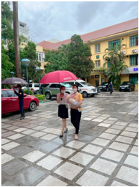 Mùi thức uống, cà phê, trà từ những quán xá ở phía sau Bệnh viện lan tỏa trong không gian hương thơm dịu nhẹ. Giá như có bình trà hay ly cà phê nóng uống trong ngày mưa như này thì ấm biết bao. Không được, ngày mưa vẫn có việc của ngày mưa, nhân viên Công tác xã hội vẫn phải ra hiện trường là sân viện nhộn nhịp bất kể mưa hay nắng, với những xe cộ, người và người.