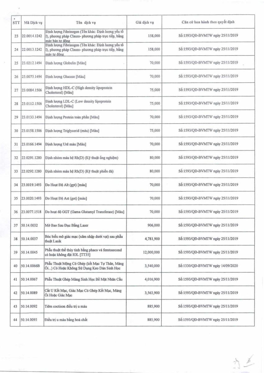 Quyết định ban hành giá dịch vụ Laser femtosecond điều trị tật khúc xạ