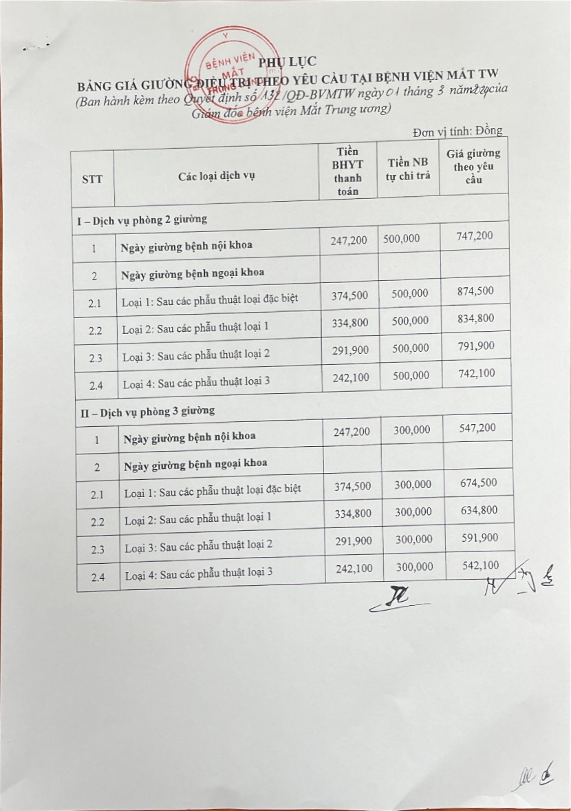 Quyết định ban hành giá dịch vụ Laser femtosecond điều trị tật khúc xạ