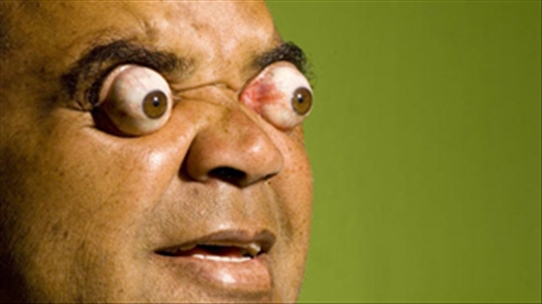 Có quá nhiều hormone tuyến giáp khiến các cơ trực và mô xung quanh mắt sưng lên và đẩy mắt về phía trước. Mắt lồi này khiến ai đó nhìn như thể họ đang liên tục nhìn chằm chằm vào vật tiêu nào đó. Đây là một triệu chứng phổ biến của bệnh Graves.
