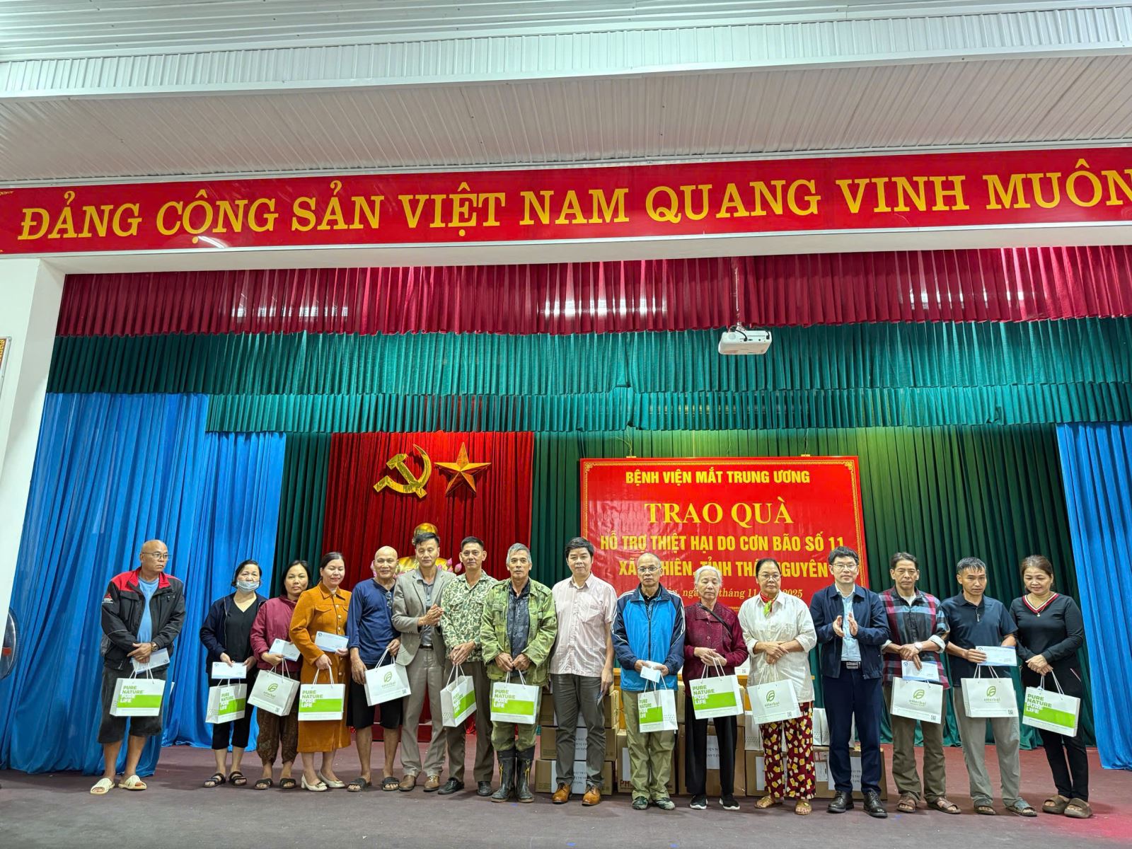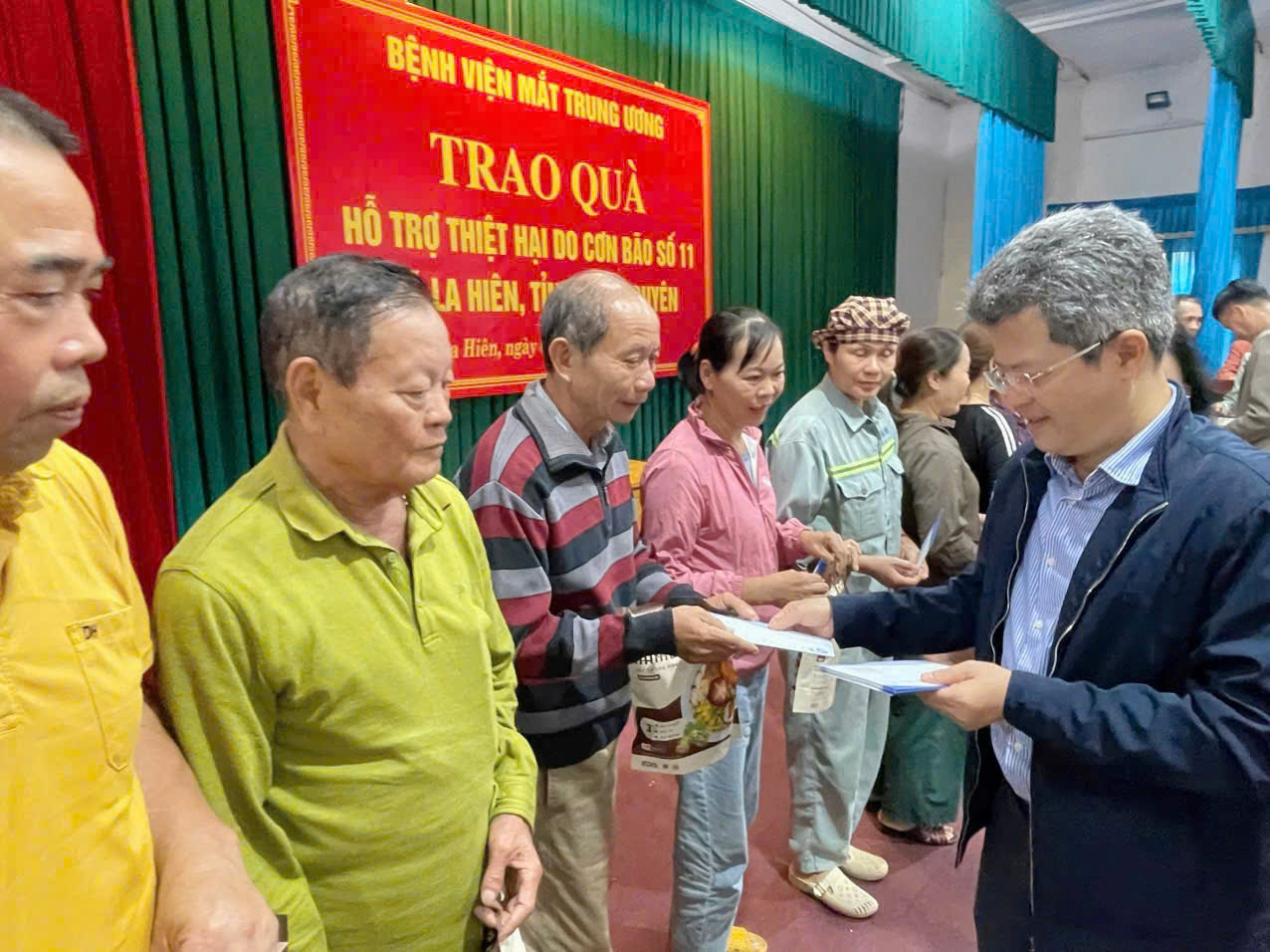 Chia sẻ của Đồng chí Nịnh Văn Hào – Bí thư Đảng ủy, Chủ tịch HĐND xã: “La Hiên là xã miền núi còn nhiều khó khăn, người dân chủ yếu sống bằng nông nghiệp, thu nhập bấp bênh. Sau cơn bão vừa qua, nhiều nhà cửa và hoa màu bị thiệt hại nặng. Sự quan tâm, sẻ chia của Bệnh viện Mắt Trung ương và Quỹ Sư thầy Huyền Diệu là nguồn động viên to lớn, tiếp thêm niềm tin để chúng tôi tiếp tục vươn lên xây dựng quê hương.”