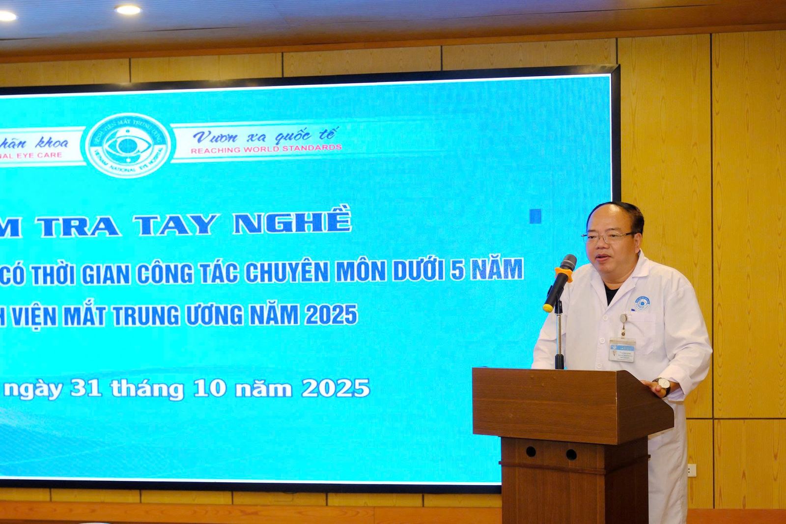 Tại kỳ kiểm tra, PGS.TS Phạm Ngọc Đông – Giám đốc Bệnh viện Mắt Trung ương chia sẻ: “Những kỳ kiểm tra tay nghề như thế này không chỉ giúp đội ngũ y bác sỹ hoàn thiện kỹ năng, nâng cao trình độ chuyên môn mà còn góp phần hình thành phong cách phục vụ chuyên nghiệp, chuẩn mực hơn trong chăm sóc và điều trị người bệnh, đáp ứng các yêu cầu chuyên môn cao hơn khi công tác tại một bệnh viện chuyên khoa đầu ngành nhãn khoa quốc gia”