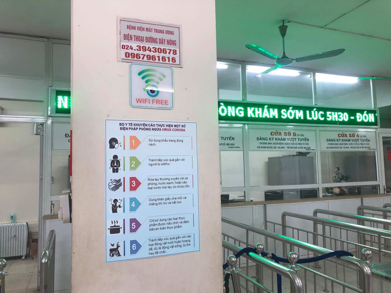 Theo chỉ đạo của PGS.TS Nguyễn Xuân Hiệp , giám đốc Bệnh viện, Trưởng Ban chỉ đạo phòng chống dịch, BV đã chuẩn bị sẵn khu cách ly tại Khoa KCB theo Yêu cầu, bố trí phân luồng bệnh nhân, phân công cán bộ trực dịch. Tại khu Đón tiếp và Bảng thông tin BV Mắt TW đều để bảng thông tin tuyên truyền về dịch bệnh nCoV, trong đó nhấn mạnh thêm thông tin bệnh nhân khi đến khám cần chủ động khai báo với nhân viên y tế về bệnh nền, sốt, ho, có tiếp xúc với người trở về từ vùng dịch hay không để nhân viên y tế phân loại, phân luồng bệnh nhân ngay.