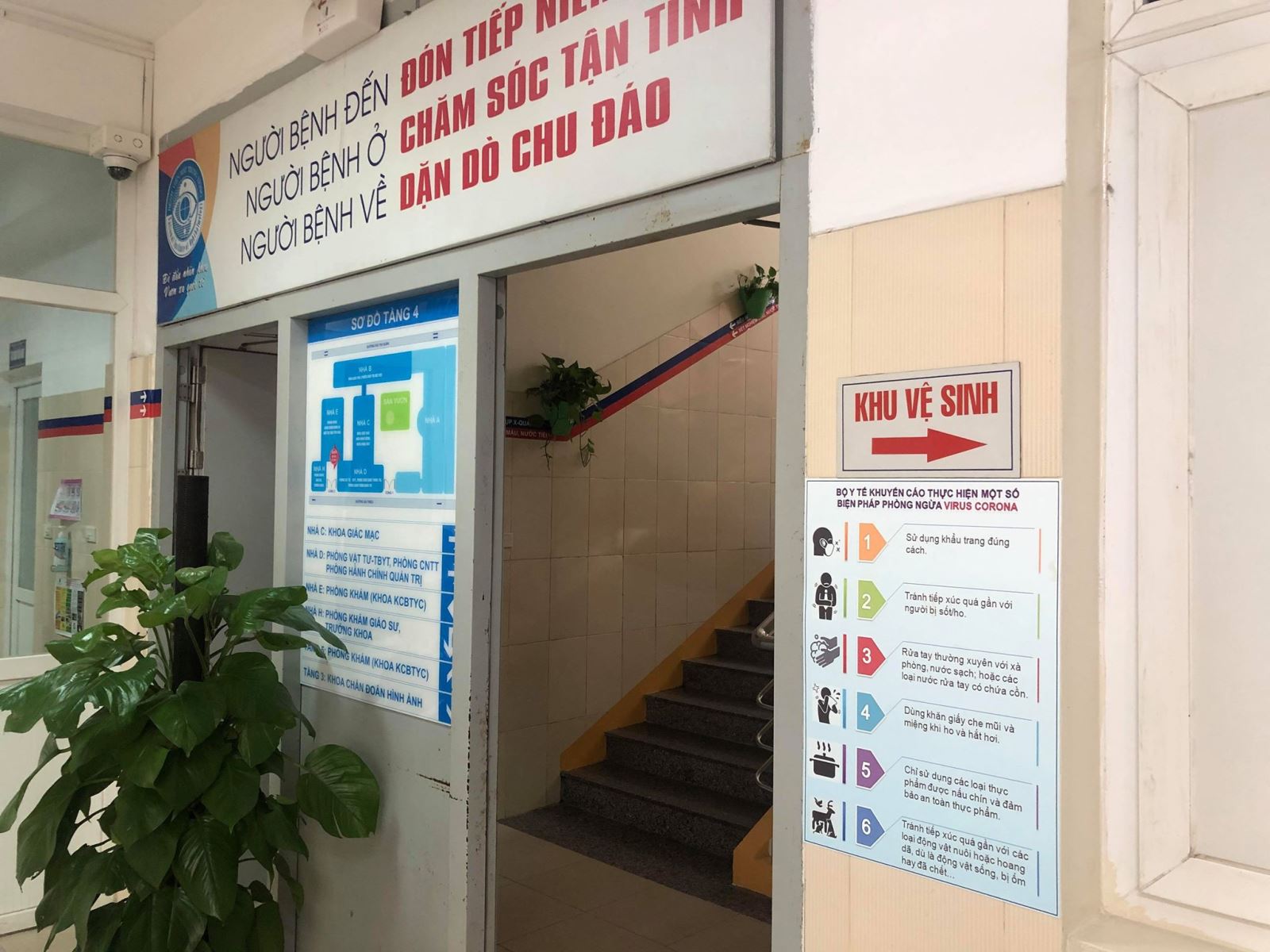 Đồng thời, bệnh viện cũng tuyên truyền trên bảng chữ điện tử , dán posters về cách phòng chống dịch nCoV, tăng cường số lượng chai rửa tay, yêu cầu nhân viên y tế tuân thủ đeo khẩu trang và rửa tay trong quá trình khám, chữa bệnh, khuyến cáo BN và người nhà dùng khẩu trang khi đến khám chữa bệnh. Nếu người bệnh và người thân đến khám chưa có khẩu trang bệnh viện sẽ phát miến phí