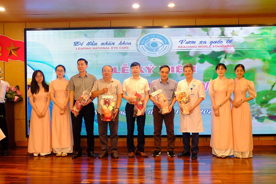 Trong hội trường đầy sắc hoa và náo nhiệt là hơn 100 gương mặt tươi trẻ đại diện cho các đối tượng đại học, sau đại học đang theo học tại BVMTW. Ban tổ chức hân hạnh được tiếp đón đầy đủ BGĐ, các lãnh đạo khoa phòng trong Bệnh viện …Đặc biệt là 122 thầy cô hướng dẫn lâm sàng: các điều dưỡng, kỹ thuật viên, khúc xạ viên đã lặng lẽ âm thầm cống hiến trong sự nghiệp trồng người của ngành Mắt, lần đầu tiên được tham dự lễ tôn vinh. Phía đối tác đào tạo của Bệnh viện là Đại học Y Hà nội, Đại học Quốc gia, Học viện YDCTVN cũng mang tới những lẵng hoa tươi thắm và sự có mặt của các thày PGS.TS. Phạm Trọng Văn, PGS.TS. Nguyễn Quang Huy.