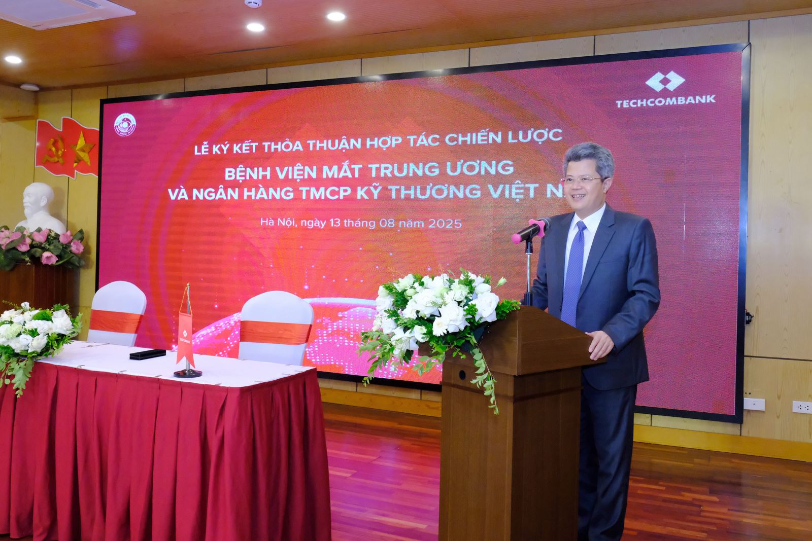 Đại diện Techcombank, bà Phan Thị Hải Yến – Giám đốc cao cấp Quản lý quan hệ khách hàng và Định chế tài chính Techcombank chia sẻ, mong muốn hợp tác và đồng hành cùng Bệnh viện Mắt Trung ương trong quá trình chuyển đổi số, mang lại ánh sáng cho người bệnh, cũng như các chương trình cộng đồng về phòng chống mù lòa trong thời gian tới.