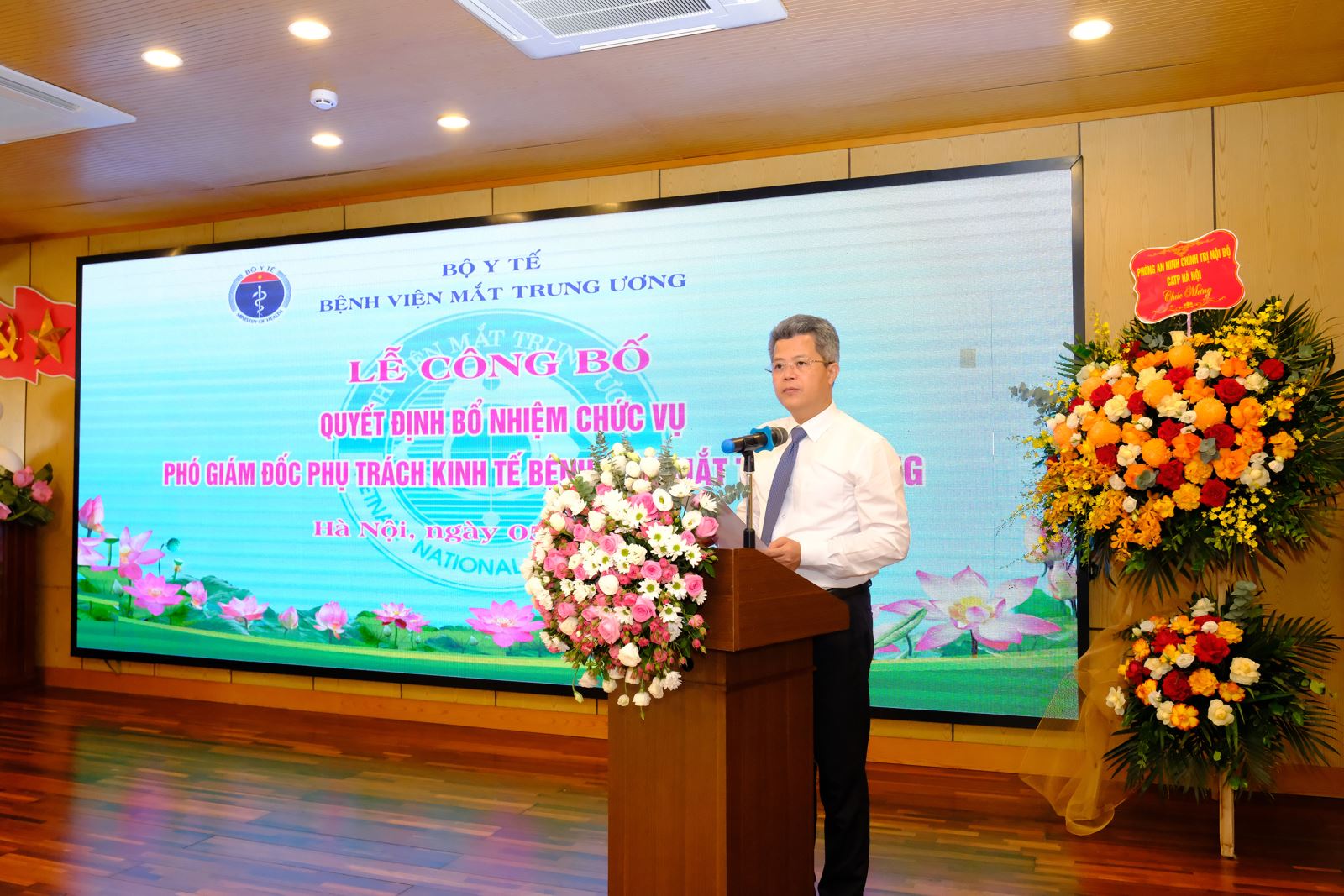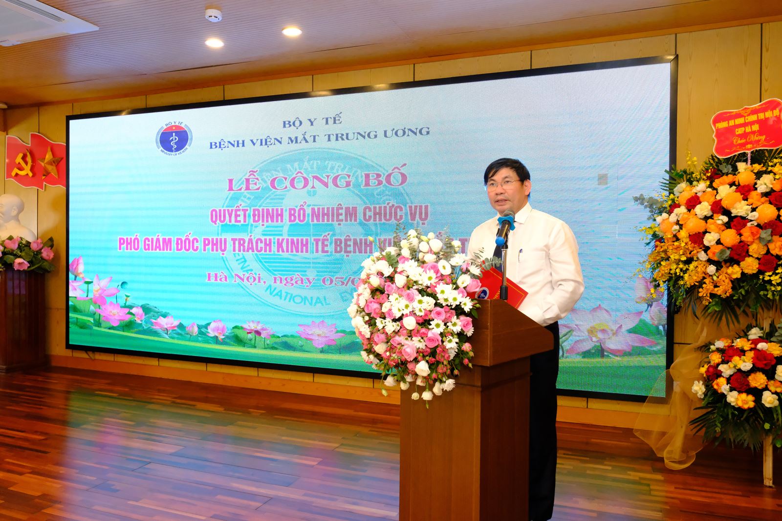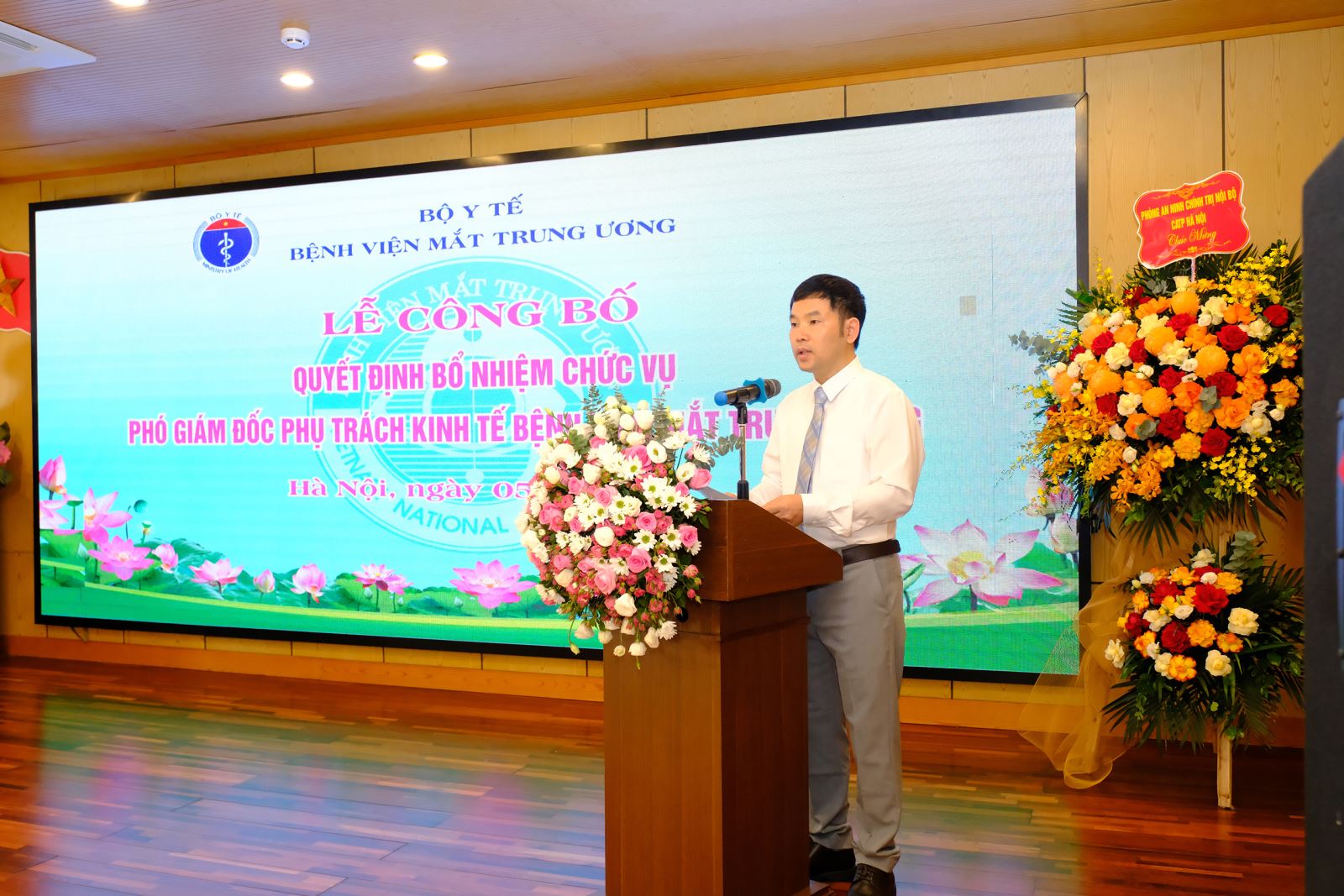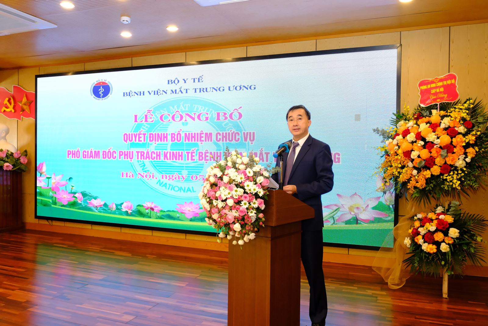 Phát biểu tại buổi Lễ công bố quyết định, PGS.TS Phạm Ngọc Đông, Bí thư Đảng ủy, Giám đốc Bệnh viện Mắt Trung ương bày tỏ sự cảm ơn lãnh đạo Bộ Y tế đã luôn quan tâm, chỉ đạo sát sao các hoạt động của Bệnh viện Mắt Trung ương và nhấn mạnh vai trò quản lý kinh tế trong bệnh viên, giúp tối ưu hóa thu chi, quản lý hiệu quả các nguồn lực và đảm bảo tính công bằng trong việc cung cấp dịch vụ y tế. Việc bổ nhiệm TS Hoàng Anh Tuấn giữ chức Phó giám đốc phụ trách kinh tế góp phần tăng cường hoạt động quản lý kinh tế trong bệnh viện, hoàn thiện các chức danh lãnh đạo chủ chốt Bệnh viện Mắt Trung ương, là điều kiện thuận lợi hơn nữa để Bệnh viện Mắt Trung ương tiếp tục ổn định, đáp ứng các yêu cầu đổi mới toàn diện. PGS.TS Phạm Ngọc Đông mong muốn Tân Phó giám đốc phụ trách kinh tế sẽ cùng tập thể lãnh đạo và toàn thể cán bộ nhân viên đoàn kết, sát cánh, xây dựng Bệnh viện Mắt Trung ương ngày càng hiện đại, phục vụ nhân dân ngày càng tốt hơn.