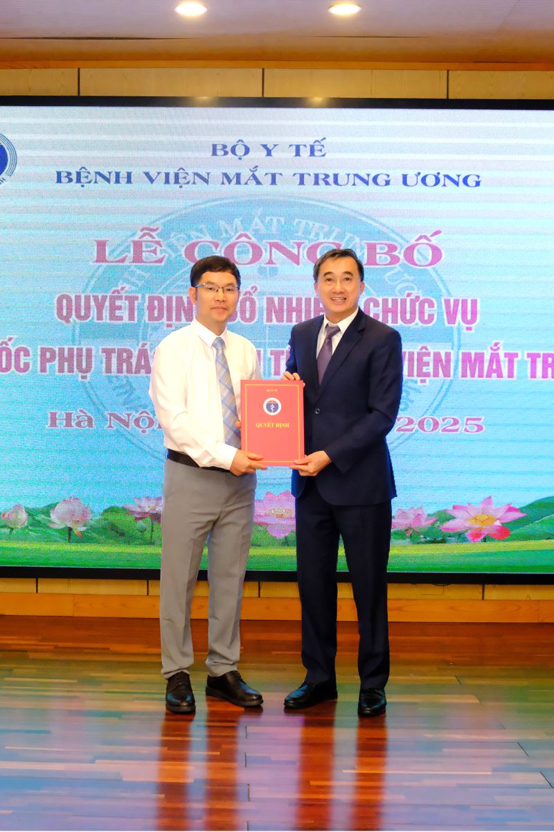 Thứ trưởng Bộ Y tế Trần Văn Thuấn bày tỏ mong muốn tập thể lãnh đạo, toàn thể cán bộ Bệnh viện Mắt Trung ương đoàn kết, năng động, sáng tạo, tận tâm cầu tân Phó Giám đốc phụ trách kinh tế tiếp tục triển khai thực hiện có hiệu quả, lấy người bệnh làm trung tâm phục vụ, không chỉ giỏi chuyên môn mà còn chú trọng công tác quản trị, tiếp tục phát triển Bệnh viện Mắt Trung ương hiện đại ngang tầm khu vực.