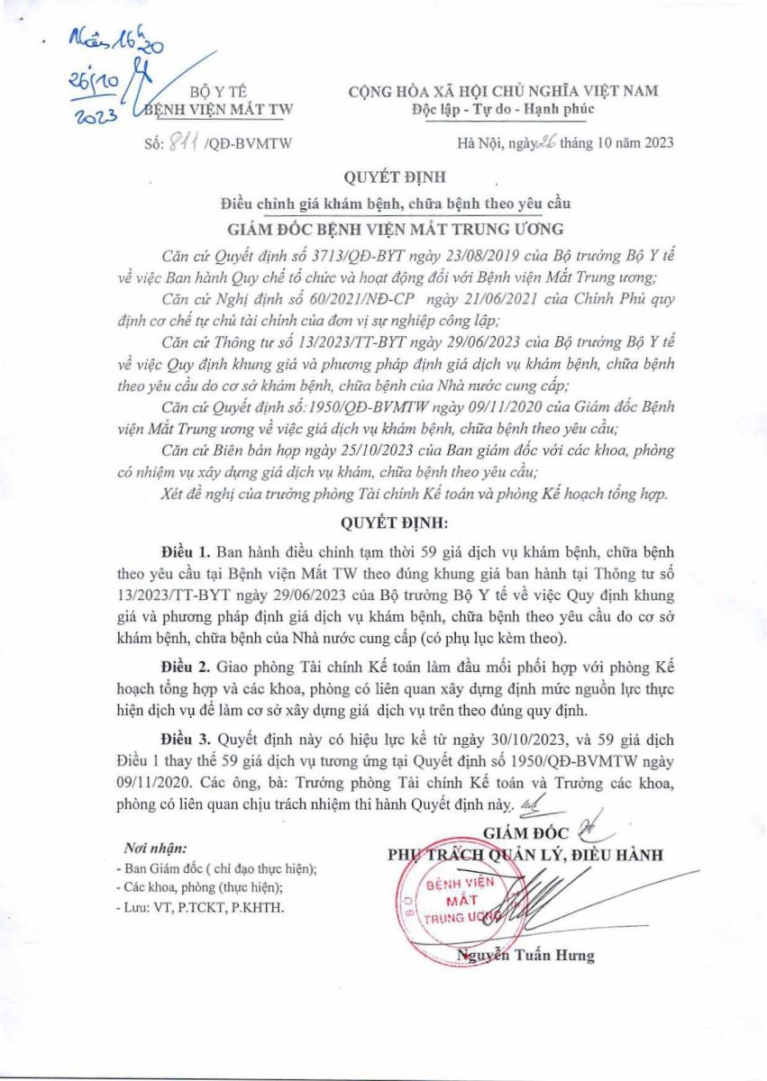 Quyết định ban hành giá dịch vụ Laser femtosecond điều trị tật khúc xạ