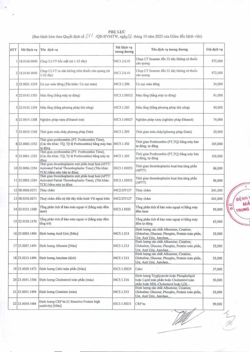 Bảng giá dịch vụ khám chữa bệnh