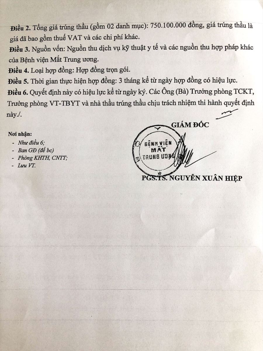 Kết quả lựa chọn nhà thầu gói thầu số 1: Mua sắm thủy tinh thể nhân tạo Podeye