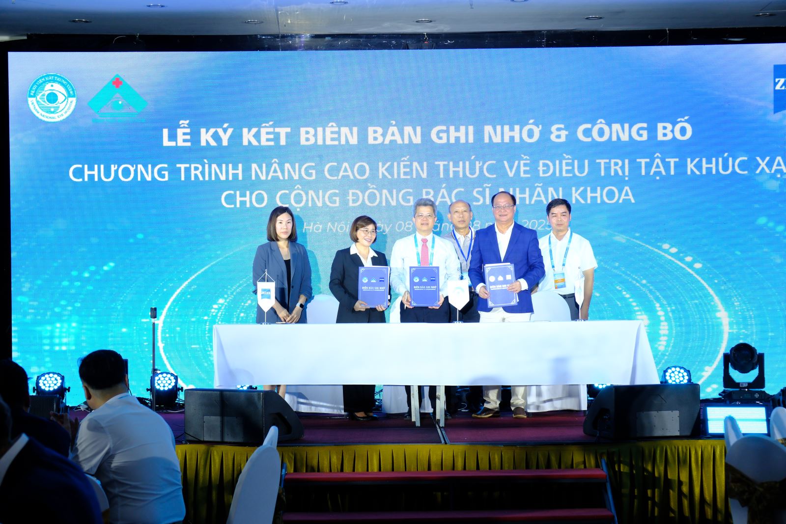 Trước đó, chiều ngày 8/8 diễn ra Lễ ký kết hợp tác đào tạo điều trị khúc xạ giữa Bệnh viện Mắt Trung ương, Bệnh viện Mắt TP.HCM và Tập đoàn Carl Zeizz nhằm thúc đẩy nâng cao năng lực khám, chẩn đoán điều trị các tật khúc xạ, đặc biệt là lĩnh vực phẫu thuật khúc xạ (cận thị, viễn thị, loạn thị…). Theo đó, chương trình này sẽ cung cấp các kiến thức, kỹ năng mới nhất, công nghệ hiện đại nhất, các phương pháp điều trị tối ưu trong điều trị các tật khúc xạ từ các chuyên gia nhãn khoa chuyên sâu hàng đầu thế giới tới hàng trăm bác sỹ nhãn khoa Việt Nam, góp phần năng cao năng lực chăm sóc mắt toàn diện. Chương trinh hợp tác đào tạo này sẽ triển khai ngay từ tháng 9/2025 tại Bệnh viện Mắt Trung ương và Bệnh viện Mắt TP.HCM.