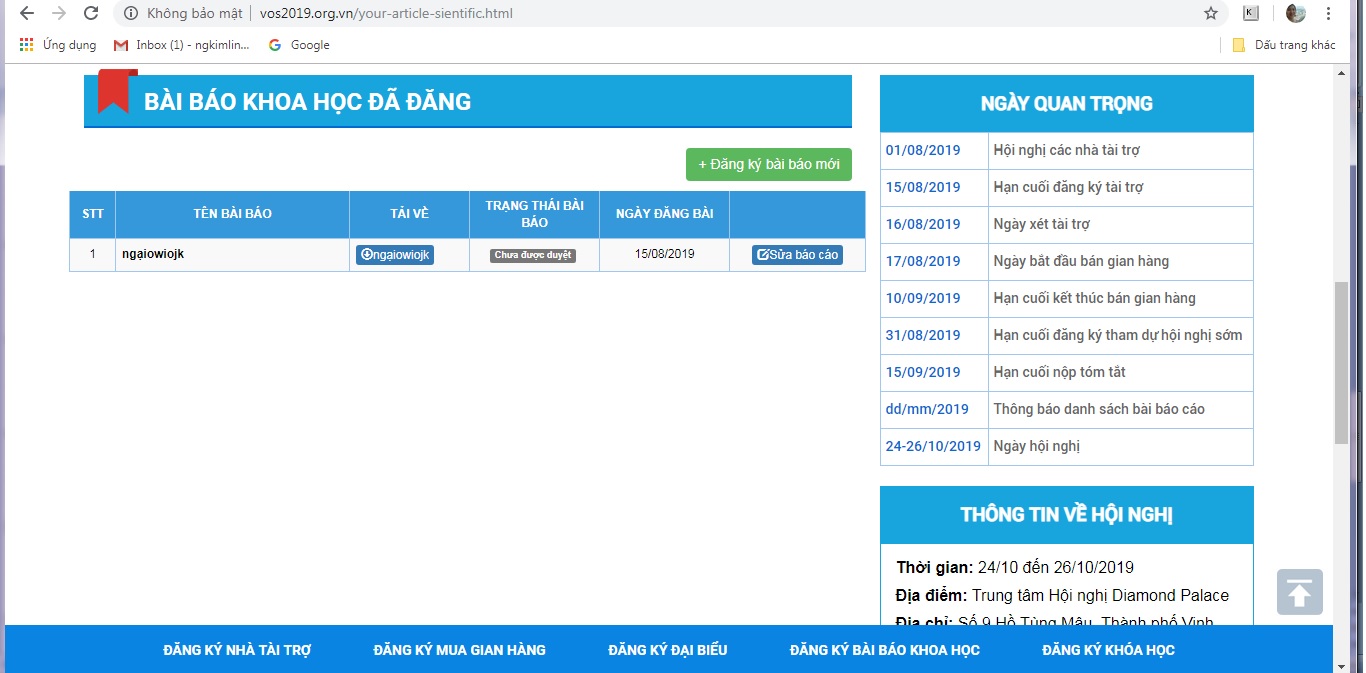 - Đăng nhập website chính thức của Hội nghị: http\\www.vos2019.org.vn