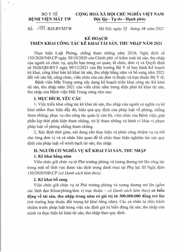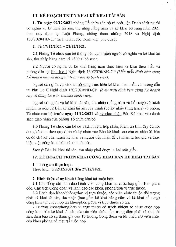 Kế hoạch triển khai công tác kê khai tài sản, thu nhập năm 2021