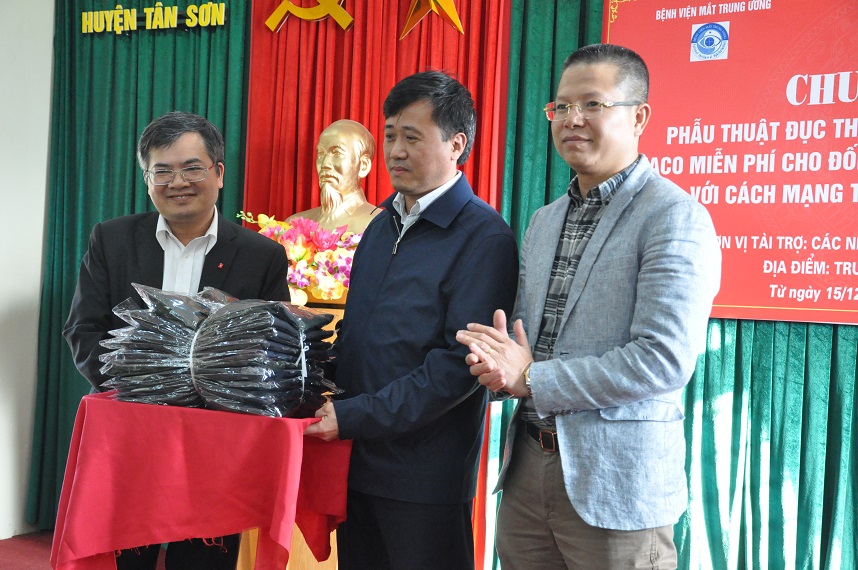 Đặc biệt đợt công tác này đoàn còn nhận được sự quan tâm, động viên và ủng hộ của đồng chí Nguyễn Duy Hưng phó chủ nhiệm Văn phòng Chính phủ kiêm trợ lý Thủ tướng, G.S Nguyễn Thanh Long thứ trưởng Bộ Y tế, đồng chí Nguyễn Thanh Hải tỉnh ủy viên – phó chủ tịch UBND tỉnh Phú Thọ, lãnh đạo Bệnh viện Mắt Trung ương cùng lãnh đạo các ban ngành địa phương. Bên cạnh đó, các vị đồng chí lãnh đạo và nhà tài tài trợ còn tặng quà cho bệnh nhân được phẫu thuật, tặng áo ấm cho các cháu có hoàn cảnh khó khăn.