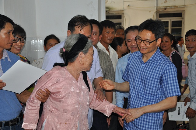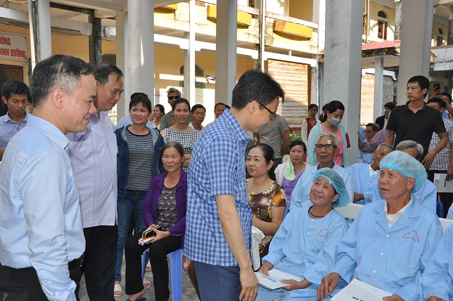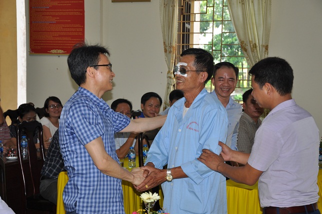 Đồng chí Phó Thủ tướng Chính phủ Vũ Đức Đam thăm, tặng quà người cao tuổi khám phẫu thuật mắt miễn phí tại Bệnh viện Đa khoa huyện Thanh Miện