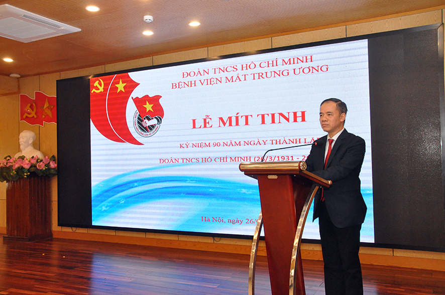 Mở đầu buổi lễ BS. Trần Trung Kiên – Bí thư Đoàn Thanh niên đã ôn lại lịch sử vẻ vang 90 năm của Đoàn TNCS Hồ Chí Minh với các truyền thống yêu nước nồng nàn, trung thành tuyệt đối với Đảng, với nhân dân và chế độ XHCN; truyền thống của đội quân xung kích Cách mạng dám đón lấy nhiệm vụ nặng nề, đi tới những nơi khó khăn, sáng tạo không ngừng; truyền thống đoàn kết trong lớp người cùng lứa tuổi trong các tổ chức Đoàn hội gắn bó với nhân dân; truyền thống hiếu học để tự mình nâng cao trình độ chính trị, văn hoá, khoa học kỹ thuật, say mê sáng tạo trong các hoạt động thực tiễn, cống hiến sức trẻ của mình cho sự nghiệp của dân tộc, của Đảng.