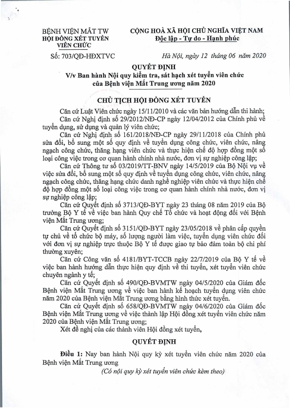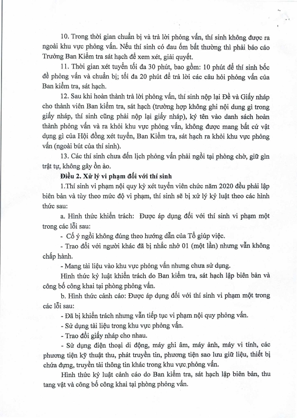 Nội quy kiểm tra, sát hạch thi tuyển viên chức năm 2020