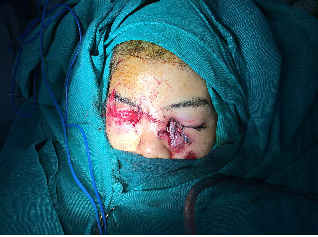Đáng lo ngại là tết đã đi qua gần 2 tuần, cả đất nước còn đang vật vã chống dịch covid 19 thì tai nạn pháo vẫn lai rai đến ngày hôm nay. Tối ngày 24/2/2021 kíp trực cấp cứu của BVMTW được yêu cầu mổ phối hợp tại Bệnh viện Việt Đức xử lý vết thương mắt cho BN Nguyễn Văn H 16 tuổi, bị đa chấn thương do pháo tự chế phát nổ gây chấn thương sọ não, chấn thương hàm mặt, chấn thương mắt, cụt 2 chi trên và nhiều vết thương nhỏ khác trên cơ thể. Ngoài vết thương có mỏm cụt ở chi trên, chấn thương sọ não và hàm mặt đã được xử lý cấp cứu ngay trong ca trực của bệnh viện Việt Đức. Vì vết thương mi phức tạp và mắt phải đã vỡ nát , kíp mổ của Bệnh Viện Mắt Trung ương được mời mổ phối hợp bắt buộc phải bỏ mắt phải. Cố gắng bảo tồn mắt trái, mắt cũng có tổn thương bề mặt nhãn cầu và nghi có dị vật nội nhãn.