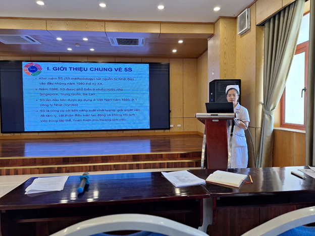 Cử nhân Vũ Phương Nhung thuyết trình nội dung: “Tập huấn và Tổng kết phương pháp 5S”