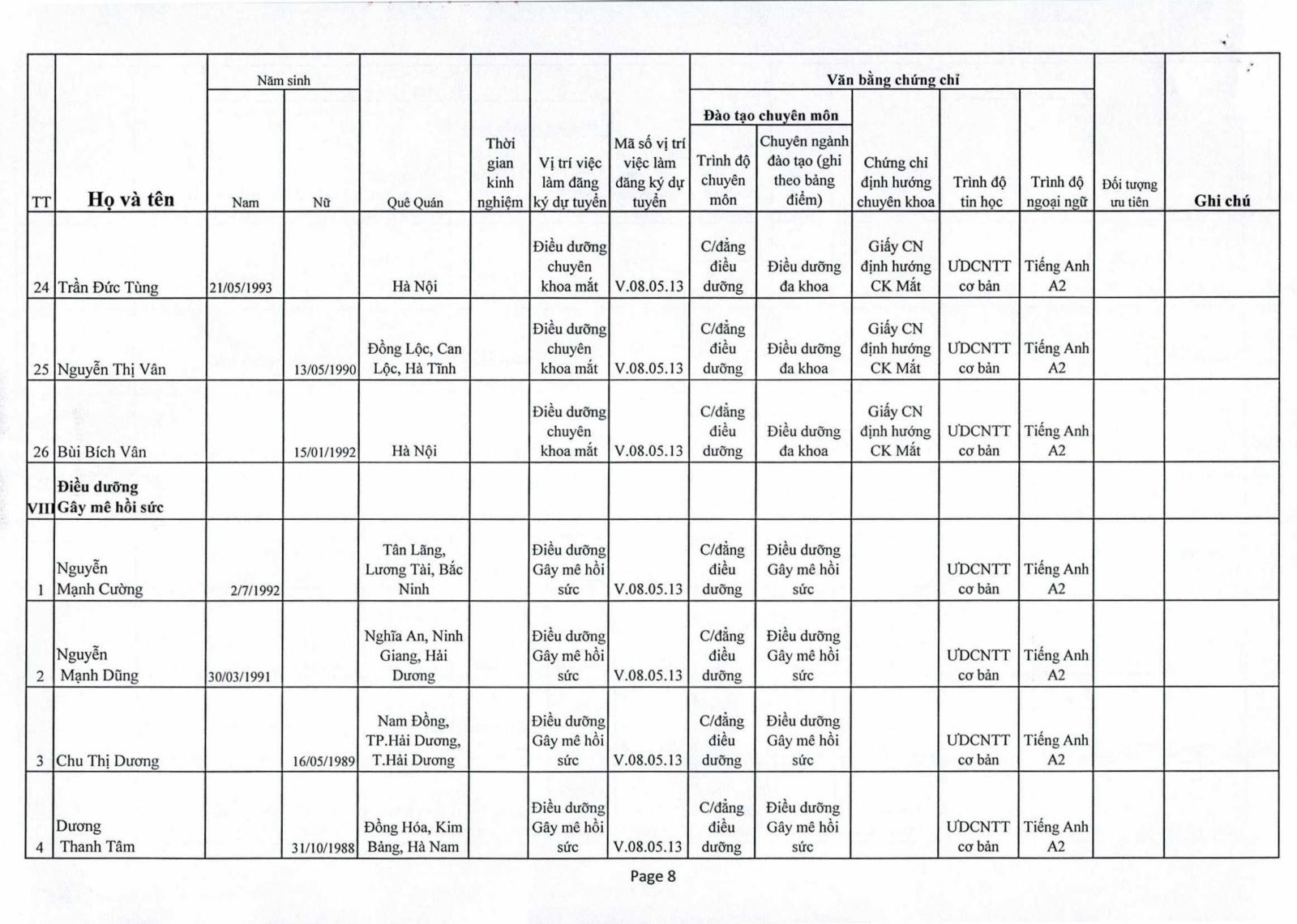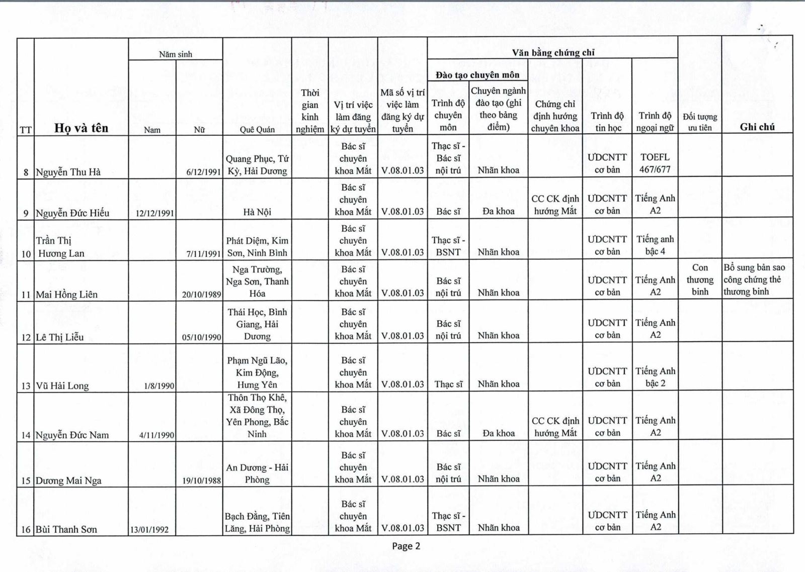 Danh sách thí sinh đủ điều kiện, tiêu chuẩn tham dự vòng 2 kỳ xét tuyển viên chức 2020 của Bệnh viện Mắt Trung ương