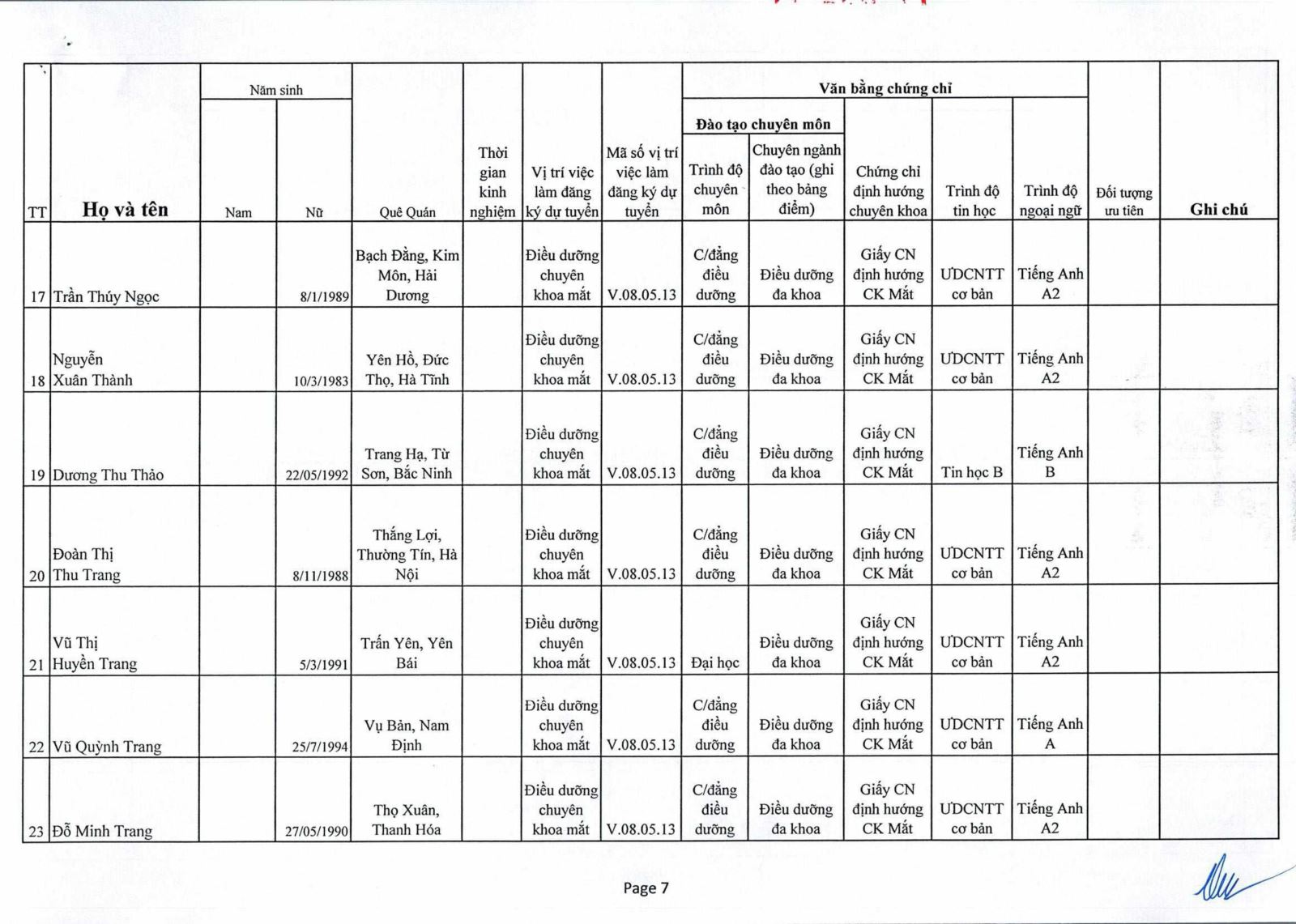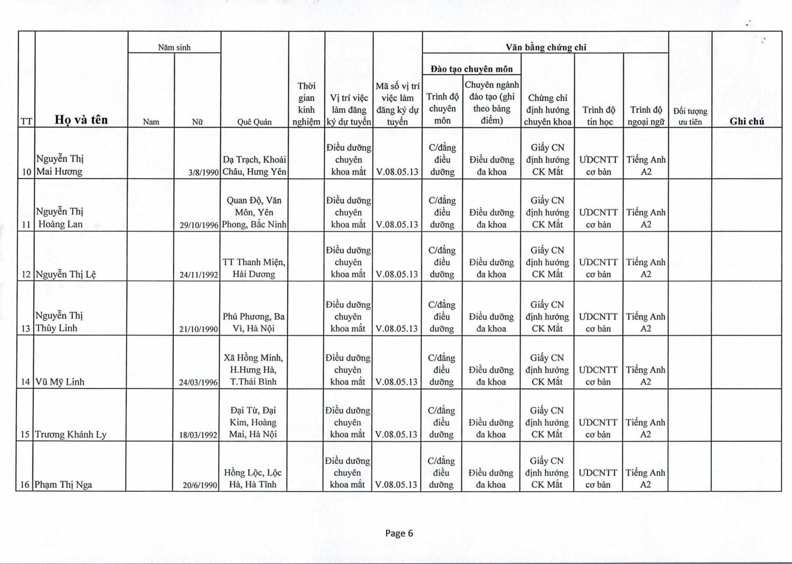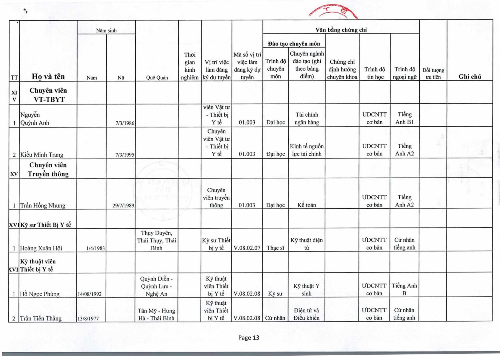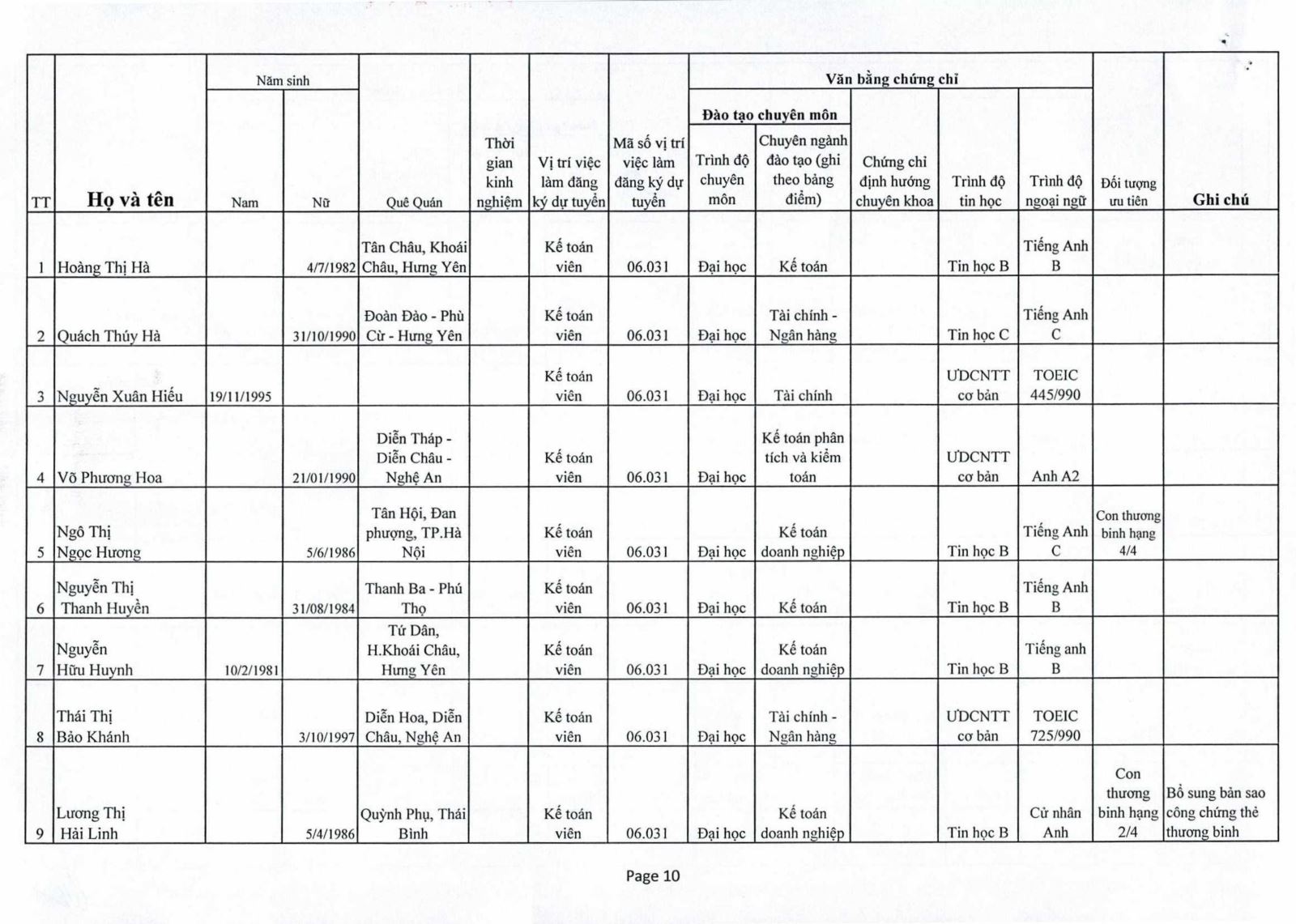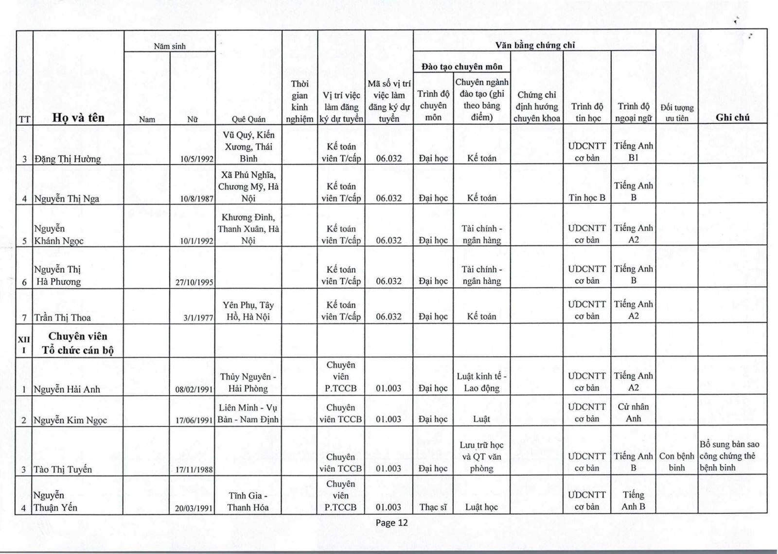 Thông báo : Kết quả trúng tuyển Nhân viên tiếp đón thuộc Phòng Công Tác Xã Hội