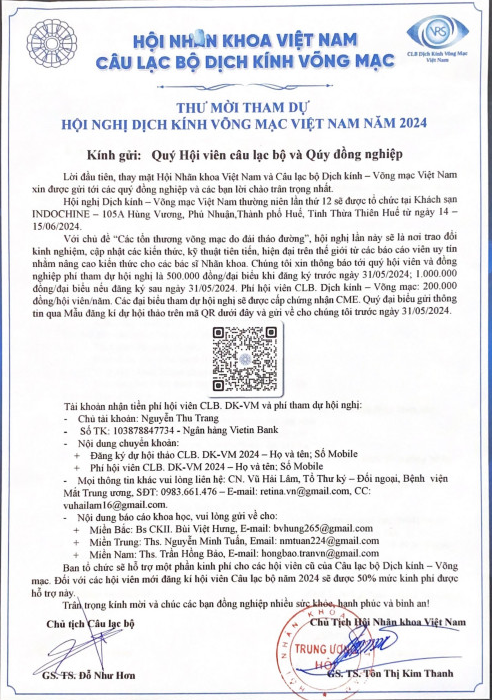 Thư mời tham dự hội nghị Dịch kính võng mạc Việt Nam năm 2024