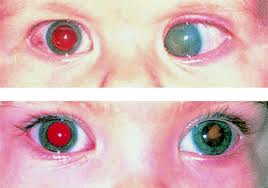 Ung thư võng mạc kèm ánh đồng tử trắng vào lác (mắt trái)