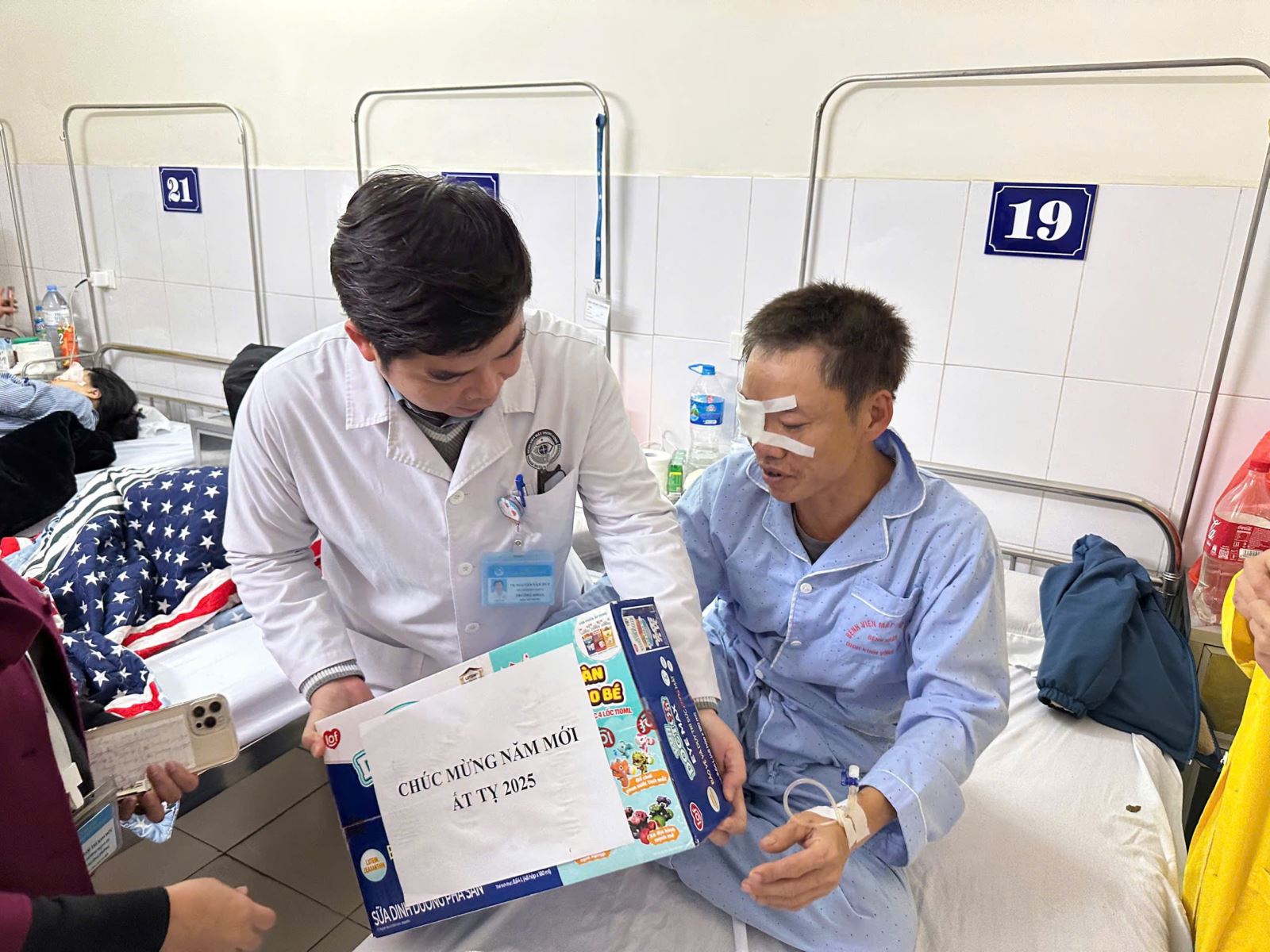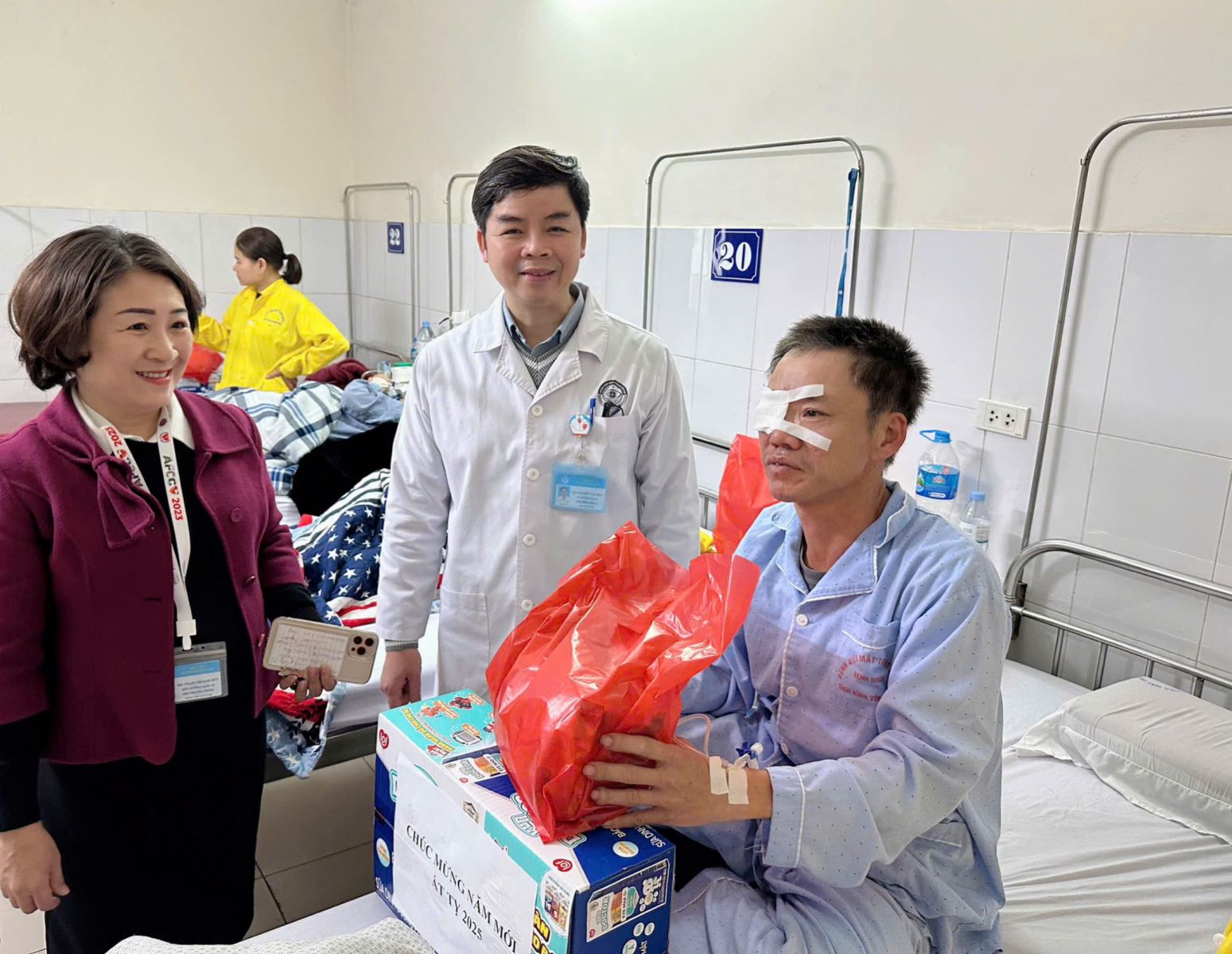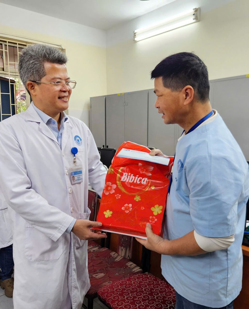 Sáng ngày 24/01/2025, PGS.TS. Phạm Ngọc Đông, Phó Giám đốc phụ trách quản lý và điều hành Bệnh viện, TS. Nguyễn Văn Huy, Chủ tịch Công đoàn Bệnh viện cùng đại diện một số bộ phận chức năng đã trao tặng 25 phần quà (gồm tiền mặt, bánh, sữa) của Công đoàn y tế Việt Nam, Bệnh viện Mắt Trung ương và của nhà tài trợ đến những đoàn viên công đoàn của Bệnh viện có hoàn cảnh khó khăn, bệnh hiểm nghèo,..