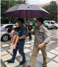 Ngày khô ráo hay nắng to thì không có vấn đề gì lớn nhưng những ngày mưa thì thực sự là vấn đề. Chậm là tắc, không nhanh là ướt, không thể bắt bệnh nhân cao lão hay mắt kém nhanh nhẹn nên nhân viên ta thường chịu ướt để che chắn cho người bệnh. Mưa có vẻ không muốn dừng lại, hàng tuần hay có lẽ hết tháng. Giờ đây trời vẫn mưa nhưng tại Bệnh viện Mắt Trung ương, hình ảnh chuyên nghiệp của nhân viên Công tác xã hội, Tổ bảo vệ hay nhân viên y tế khi tiếp đón người bệnh trong những ngày mưa không còn xa lạ nữa. Với chiếc ô trên tay, những bước chân thoăn thoắt, lời nói nhẹ nhàng cùng với trái tim đồng cảm, họ đã che mưa cho người bệnh đến khám chữa tại Bệnh viện mỗi khi băng qua sân, lên xuống xe, hỗ trợ người bệnh di chuyển trong mưa... Dõi theo bước chân họ trong những chiếc áo mưa, cùng chiếc ô trên tay đi lại dưới trời mưa mà vẫn nở nụ cười rất tươi khi đón tiếp người bệnh, nhẹ nhàng nhắc nhở người bệnh đeo khẩu trang, ân cần, chu đáo khi hướng dẫn, trợ giúp người bệnh…. Thực sự cảm phục và vô cùng ấm lòng.