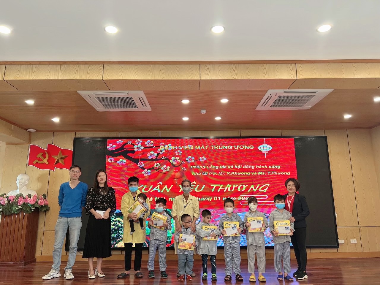 Trong những ngày cận Tết Nguyên Đán 2023, nhiều trẻ em, người cao tuổi bệnh nặng, gia cảnh khó khăn phải nhập viện điều trị đã được Phòng Công tác xã hội kết nối với nhà tài trợ để giúp đỡ, động viên tinh thần. Ngày 13/01/2023 gia đình anh Xuân Khương, chị Phương đã trực tiếp trao tặng 60 suất quà tới bệnh nhi, người cao tuổi điều trị nội trú, mỗi suất quà gồm một hộp bánh và phong bì trị giá 200.000 đồng. Một bệnh nhân của khoa Dịch kính -Võng mạc đã chia sẻ cảm nhận của mình “Cảm ơn Bệnh viện, Phòng Công tác xã hội đã tận tâm cứu chữa mắt, chia sẻ hoàn cảnh của tôi và gia đình. Tôi rất tin tưởng vào chuyên môn của y bác sỹ, cảm ơn nhà hảo tâm đã tặng quà và rất xúc động khi ngày Tết đã cận kề lại nhận được quà của Bệnh viện giành cho mình, cho những bệnh nhân xung quanh…”