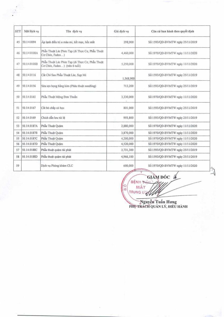 Quyết định ban hành giá dịch vụ Laser femtosecond điều trị tật khúc xạ