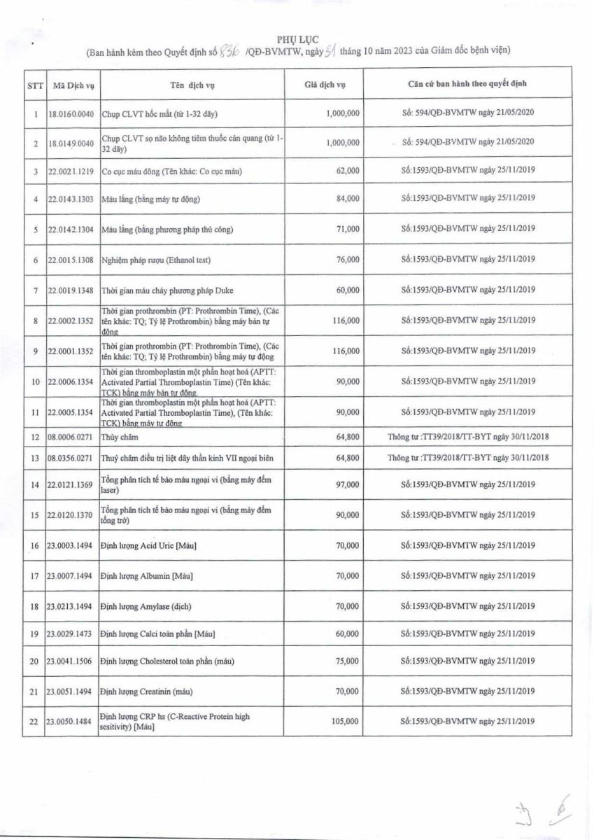 Quyết định ban hành giá dịch vụ