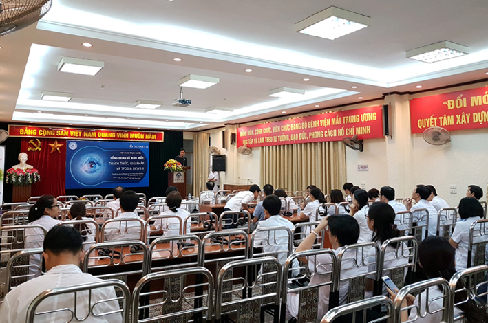 Sáng ngày 22/6/2017, tại điểm cầu Bệnh viện Mắt Trung ương gần 100 bác sĩ nhãn khoa đã tham dự Hội thảo trực tuyến “Tổng quan về khô mắt: Thách thức, giải pháp và TFOSDEWII”. Đây là hội thảo được truyền trực tiếp từ Hội thị lực Hoa kỳ (AOA) tại Washington DC, Hoa Kỳ. Hội thảo do Novartis tài trợ, trong khuôn khổ hợp tác với Hội bề mặt nhãn cầu và phim nước mắt (TFOS), được truyền trực tiếp trên toàn thế giới nhằm kết nối tất cả các bác sĩ nhãn khoa, những người đang chăm sóc cho bệnh nhân khô mắt. Các báo cáo khoa học tại hội thảo tập trung vào các nội dung thiết thực nhất về bệnh lý khô mắt, từ định nghĩa, chẩn đoán đến thực hành điều trị.