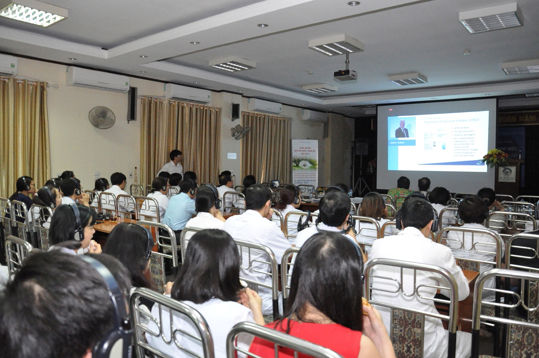 Trong lời phát biểu khai mạc, TS. Nguyễn Xuân Hiệp – Giám đốc Bệnh viện Mắt TW, P. Chủ tịch kiêm Tổng thư ký Hội Nhãn khoa Việt Nam cho biết hội chứng Khô mắt là một vấn đề rất đáng quan tâm hiện nay. Với các triệu chứng chính là cộm mắt, đỏ mắt, kích thích mắt, bệnh khô mắt gây ảnh hưởng tới đời sống sinh hoạt hàng ngày của người bệnh. Nếu không dược điều trị, các triệu chứng trên sẽ xuất hiện thường xuyên hơn, nặng hơn, làm giảm thị lực và gây ảnh hưởng đến sinh hoạt, học tập và lao động của người bệnh. Hơn nữa việc chẩn đoán xác định khô mắt, nguyên nhân khô mắt nhiều khi còn khó khăn do bản chất bệnh lý khô mắt phức tạp, đa yếu tố, có sự khác biệt giữa các lứa tuổi, nghề nghiệp. Chính vì vậy hội thảo lần này là cơ hội tốt để các bác sĩ nhãn khoa Việt Nam cập nhật các kiến thức, kinh nghiệm quý báu từ các đồng nghiệp trên thế giới. Hội thảo càng có ý nghĩa hơn khi diễn ra đúng dịp kỷ niệm 100 năm thành lập Viện Mắt, 60 năm thành lập Bệnh viện Mắt TW.