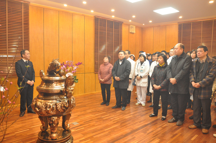 Trong không khí trang nghiêm, thành kính, TS. Nguyễn Xuân Hiệp thay mặt toàn thể CBVC bệnh viện dâng hương tưởng nhớ Chủ tịch Hồ Chí Minh, vị lãnh tụ thiên tài, Anh hùng giải phóng dân tộc, danh nhân văn hóa thế giới, người đã khai sinh ra nước Việt Nam dân chủ cộng hòa, nay là nước Cộng hòa xã hội chủ nghĩa Việt Nam. Người lúc sinh thời đã giành sự quan tâm đặc biệt đến ngành y tế nói chung, ngành nhãn khoa nói riêng. Sự ra đời chính thức của Viện Mắt hột – tiền thân của Bệnh viện Mắt TW ngày nay cũng chính bắt nguồn từ chuyến thăm đặc biệt của Người cách đây hơn 60 năm. TS. Nguyễn Xuân Hiệp cũng bày tỏ lòng tri ân các thế hệ lãnh đạo tiền nhiệm đã dày công xây dựng bệnh viện, hứa với các thế hệ lãnh đạo tiền nhiệm toàn thể CBVC bệnh viện sẽ nỗ lực đoàn kết, phấn đấu, đưa bệnh viện ngày càng phát triển. TS. Nguyễn Xuân Hiệp mong muốn các cán bộ lãnh đạo bệnh viện đã nghỉ hưu, gia đình các cố lãnh đạo tiền nhiệm sẽ cung cấp, bổ sung cho phòng Truyền thống thêm những tư liệu, hiện vật để phòng Truyền thống ngày càng phong phú, thực sự là nơi giáo dục truyền thống của một bệnh viện Anh hùng với bề dày hơn 100 năm cho các thế hệ trẻ sau này.