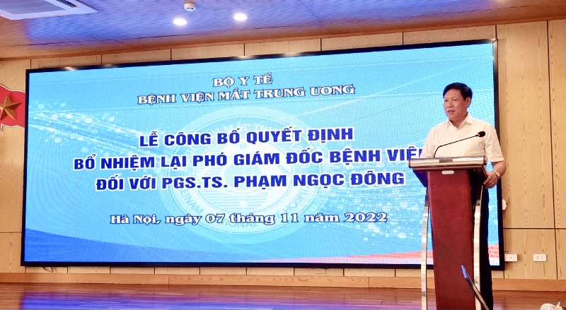 Tại buổi lễ, thừa ủy quyền của Bộ trưởng Bộ Y tế, đồng chí Nguyễn Hồng Sơn, Vụ trưởng Vụ Tổ chức cán Bộ công bố quyết định bổ nhiệm lại Phó Giám đốc phụ trách chuyên môn Bệnh viện Mắt Trung ương.