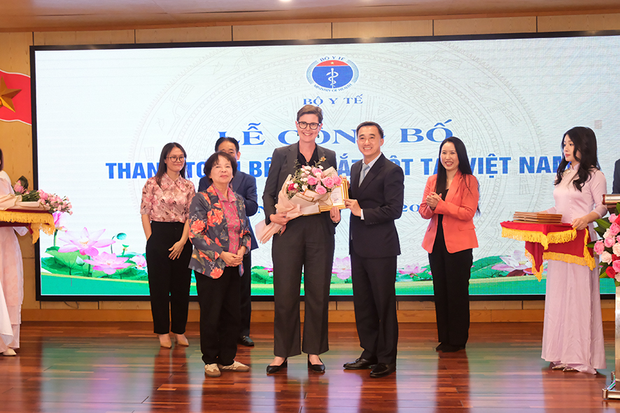 Tại buổi Lễ công bố, bà Angela Pratt được ủy quyền trao chứng nhận của Tổng Giám đốc tổ chức WHO cho  Bộ Y tế Việt Nam về thanh toán bệnh mắt hột.