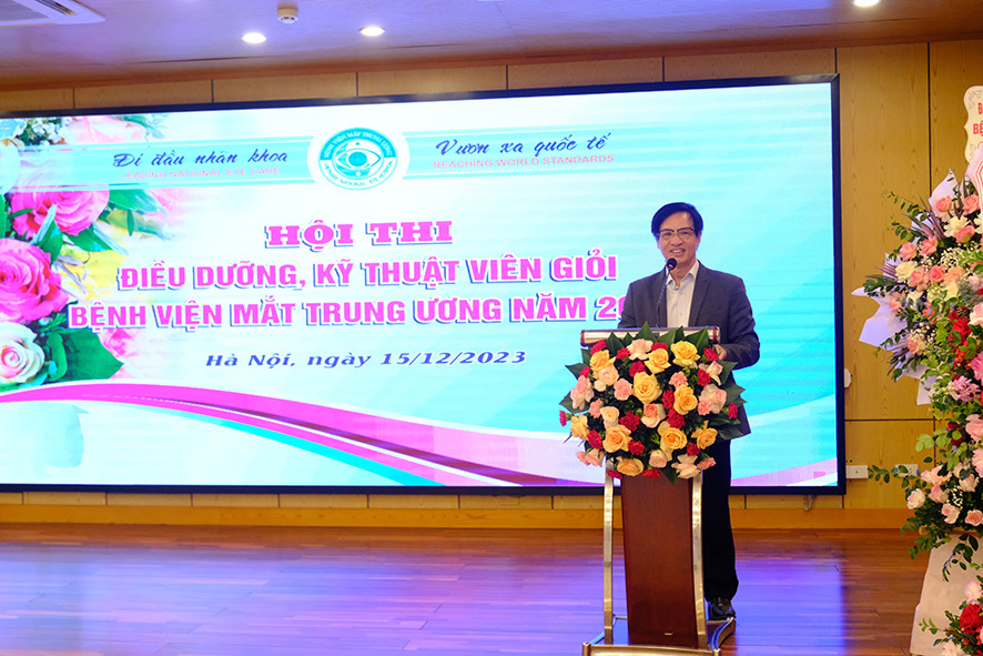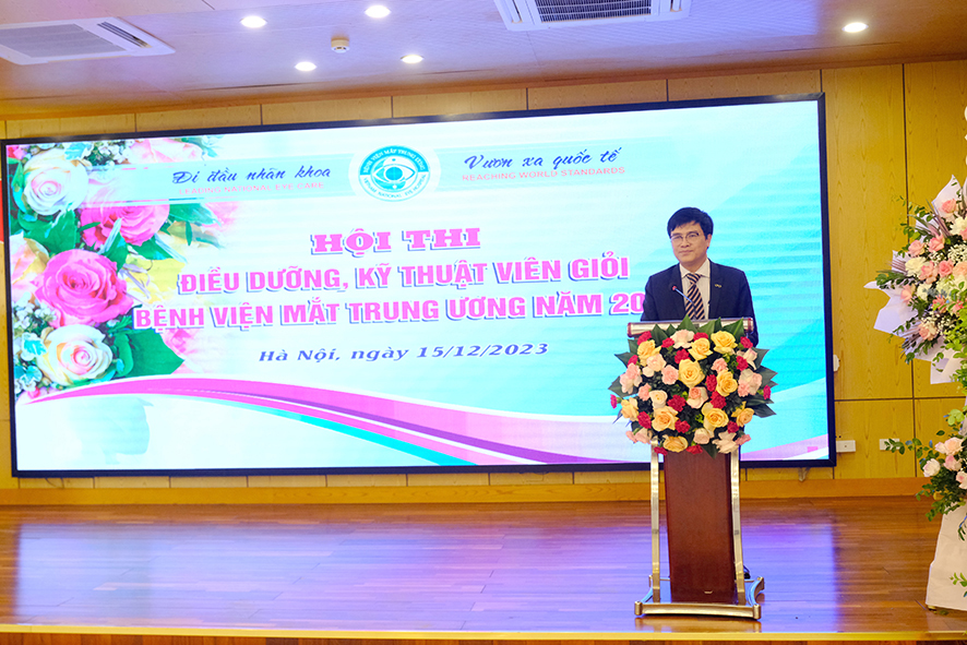 Phát biểu chỉ đạo tại Hội thi, PGS.TS Nguyễn Tuấn Hưng, Phó Vụ trưởng Vụ Tổ chức cán bộ Bộ Y tê kiêm phụ trách quản lý điều hành Bệnh viện Mắt TW, Trưởng Ban giám khảo Cuộc thi đánh giá rất cao vai trò, trình độ chuyên môn của các điều dưỡng, kỹ thuật viên Bệnh viện Mắt Trung ương.