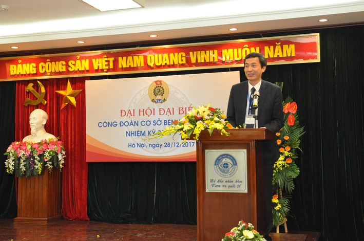 Báo cáo của chủ tịch công đoàn BV Nguyễn Đức Thành đã nêu rõ những thuận lợi và khó khăn trong công tác công đoàn nhiệm kỳ 2012-2017. Trong đó nhấn mạnh sự chỉ đạo của Đảng ủy, BGĐ, đoàn kết đồng lòng của toàn bộ đội ngũ đoàn viên là sức mạnh to lớn giúp bệnh viện hoàn thành xuất sắc mọi nhiệm vụ, vượt qua giai đoạn khó khăn nhất của những năm 2014-2015.Đại hội kết thúc nhiệm kỳ diễn ra trong những ngày cuối năm 2017 đầy thăng hoa: bệnh viện tròn 100 tuổi, được trao tặng Huân chương Độc lập hạng III, vinh dự được Thủ tướng đến thăm và làm việc…BCH cũng thẳng thắn nghiêm túc ghi nhận những tồn tại để nhiệm kỳ mới có thể khắc phục: hoạt động công đoàn còn có lúc chìm lắng, không đồng đều, thiếu tính sáng tạo, chưa ngang tầm với đà phát triển chung của bệnh viện. Phát biểu chỉ đạo đại hội, đồng chí Trần Thị Bích Hằng - Chủ tịch CĐYT Việt Nam đã nhiệt liệt biểu dương và ghi nhận những thành tích nổi bật của bệnh viện: các phong trào thi đua yêu nước, hoạt động văn thể mỹ, đặc biệt là hoạt động nghiên cứu khoa học của bệnh viện là rất ấn tượng. Các hoạt động thiện nguyện của bệnh viện: hiến máu tình nguyện, ủng hộ các quĩ xã hội cũng rất đáng học tập nhưng cần đầy mạnh công tác phát triển Đảng cho công đoàn viên ưu tú, quan tâm hơn nữa đến công tác truyền thông. Truyền thông không chỉ một chiều hướng đến sự hài lòng của người bệnh mà còn là giáo dục bệnh nhân và người nhà họ tuân thủ nội qui, hợp tác, tạo điều kiện để nhân viên y tế hoàn thành tốt nhiệm vụ.