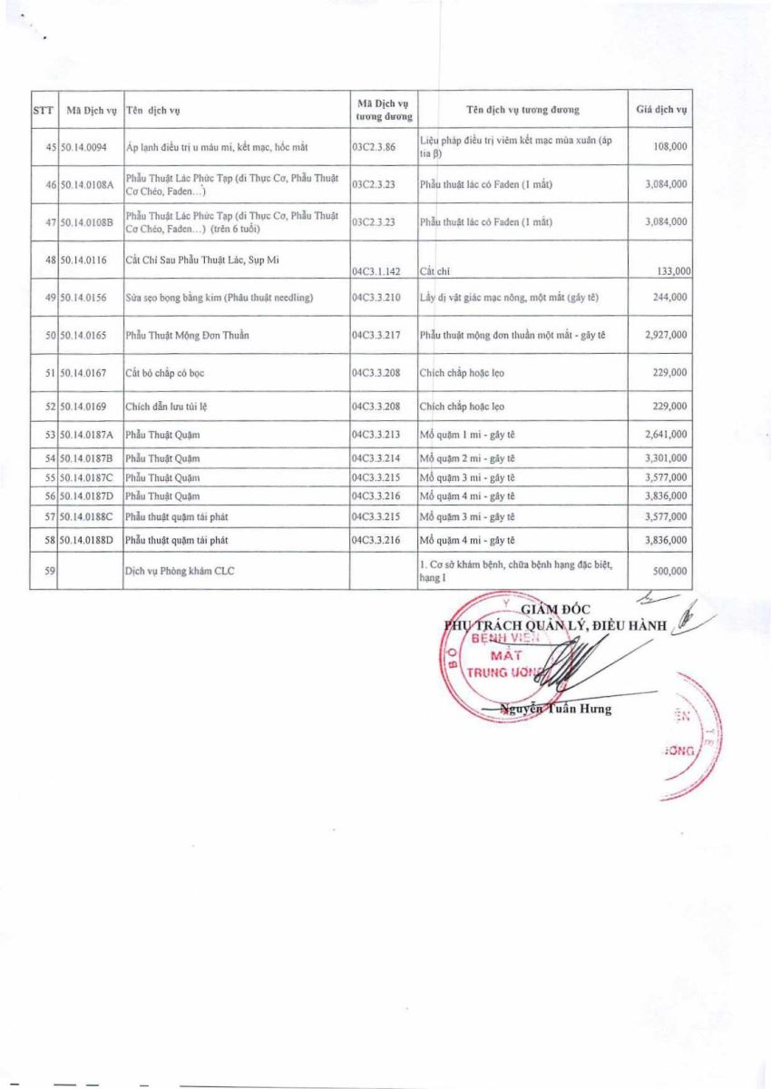 Quyết định ban hành giá dịch vụ Laser femtosecond điều trị tật khúc xạ