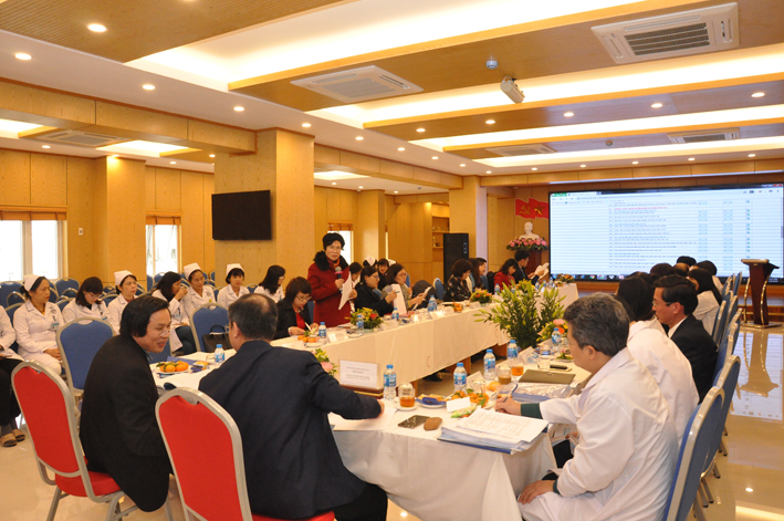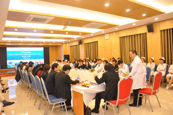 Đón đoàn có PGS.TS. Nguyễn Xuân Hiệp – Giám đốc bệnh viện, toàn thể Ban Giám đốc, đoàn kiểm tra bệnh viện, lãnh đạo các khoa phòng. Sau khi nghe BS.TS. Phạm Ngọc Đông – Phó Giám đốc bệnh viện trình bày báo cáo tổng kết hoạt động năm 2018, đoàn kiểm tra đã chia thành các tổ kiểm tra, đánh giá 79/83 tiêu chí của Bộ tiêu chí chất lượng bệnh viện Việt Nam (phiên bản 2.0 ban hành kèm theo Quyết định số 6858/QĐ-BYT ngày 18 tháng 11 năm 2016 của Bộ trưởng Bộ Y tế) và các văn bản hướng dẫn đánh giá do Bộ Y tế ban hành.