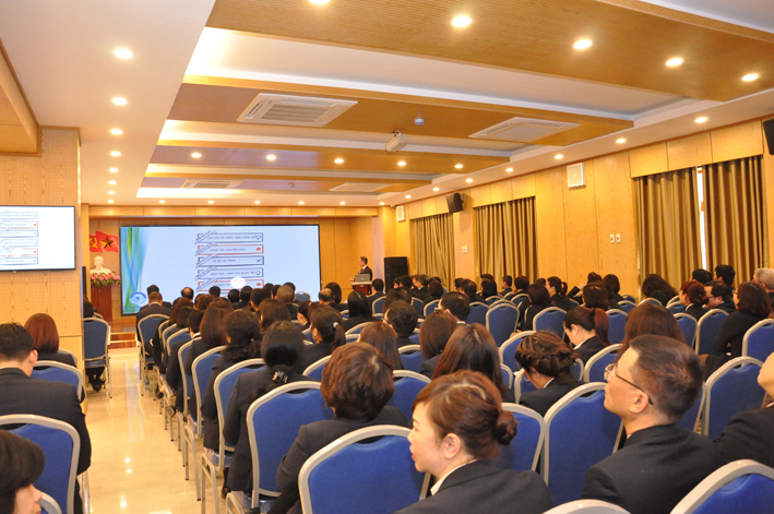 Đồng chí Nguyễn Đức Thành –phó giám đốc Bệnh viện đã báo cáo trước Hội nghị báo cáo tài chính công khai năm 2018. Bệnh viện quyết tâm cải thiện đời sống CBCC, từng bước tăng thu nhập cho người lao động. Cơ chế chi tiêu nội bộ, xây dựng cơ cấu giá vẫn đang được khẩn trương hoàn thiện và chờ thông qua.