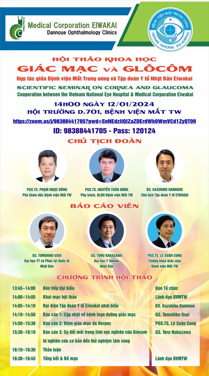 Bệnh viện mắt Trung ương với Tập đoàn Y tế Nhật Bản sẽ tổ chức Hội thảo khoa học Giác mạc và Glôcôm vào ngày 12/01/2024