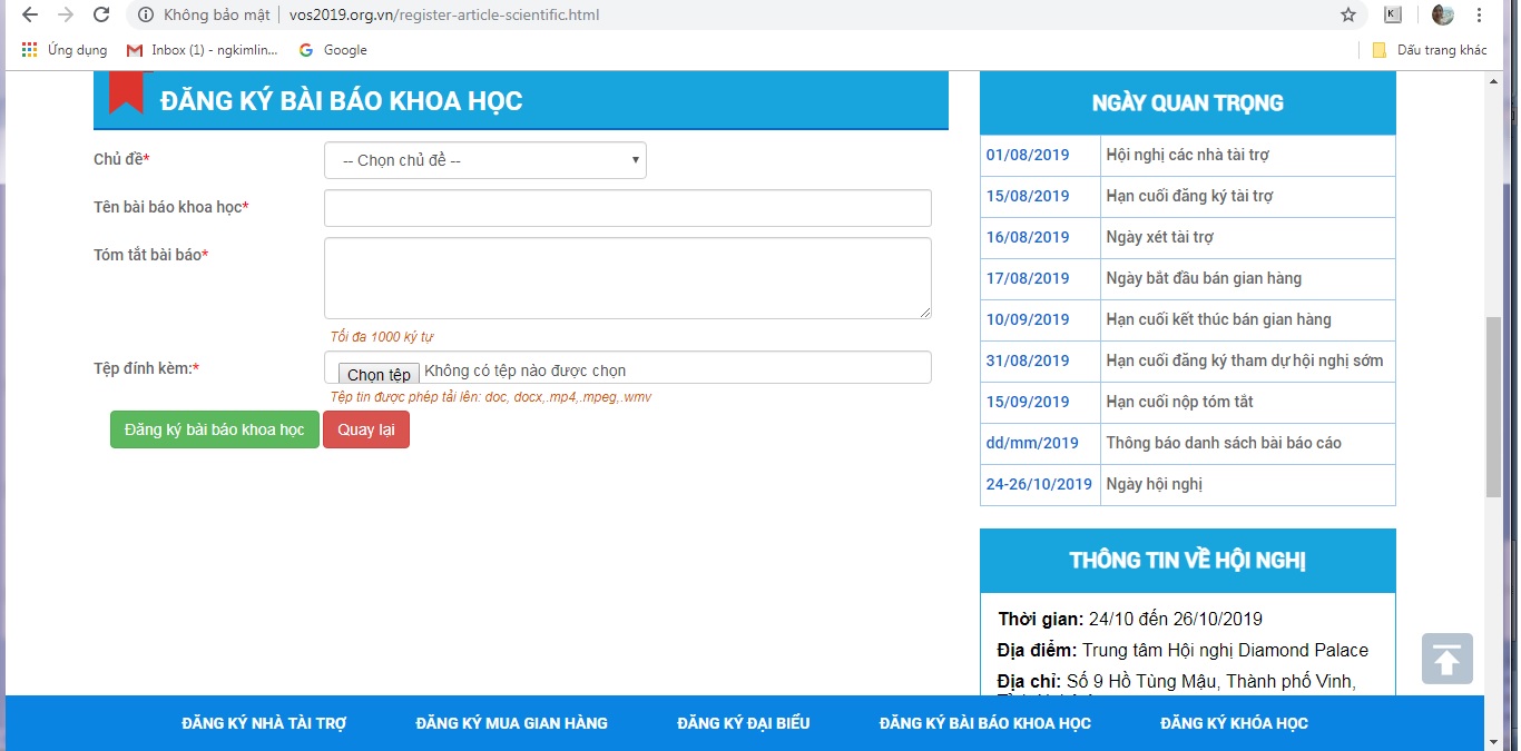 - Đăng nhập website chính thức của Hội nghị: http\\www.vos2019.org.vn