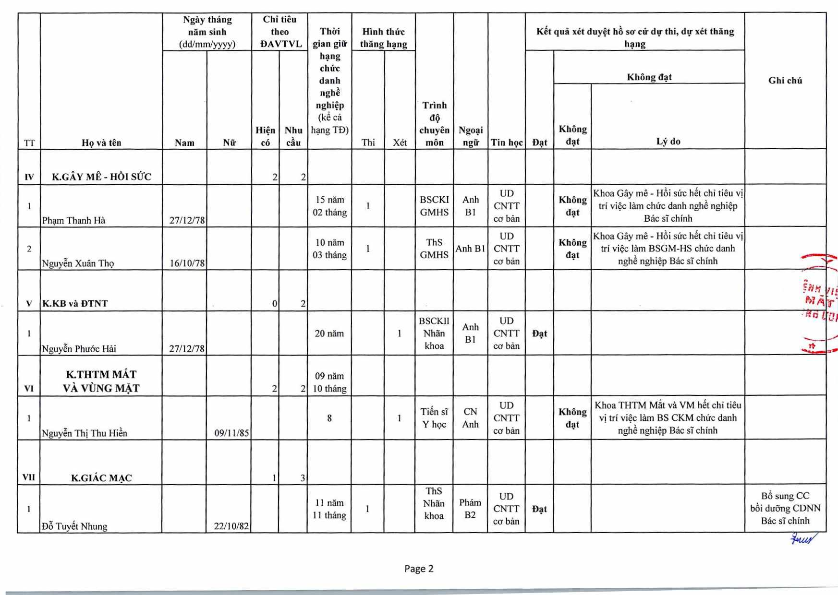 Kết quả duyệt hồ sơ cử viên chức dự thi thăng hạng chức danh nghề nghiệp chuyên ngành y tế từ hạng II lên hạng I năm 2021